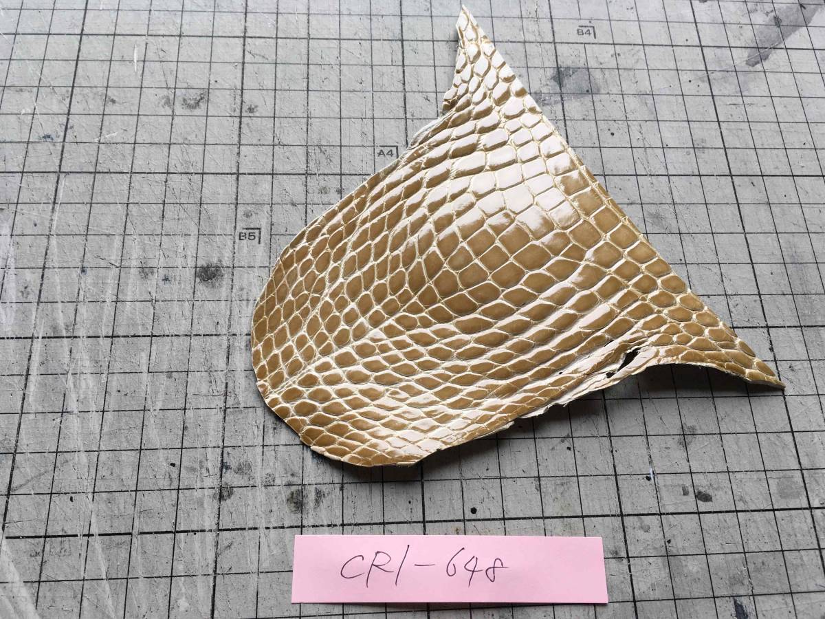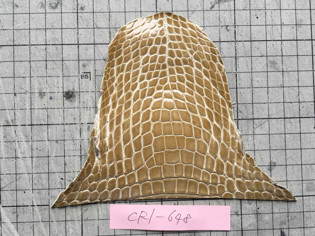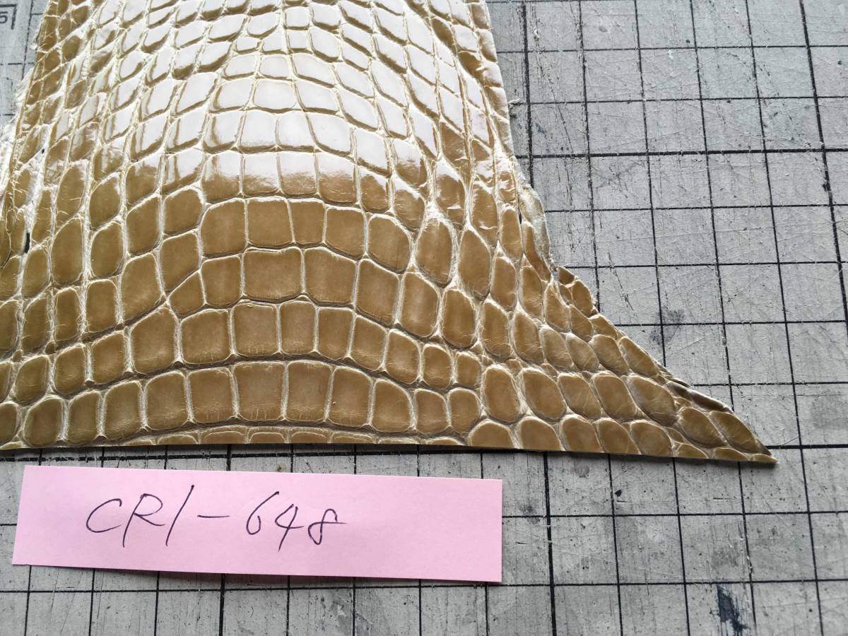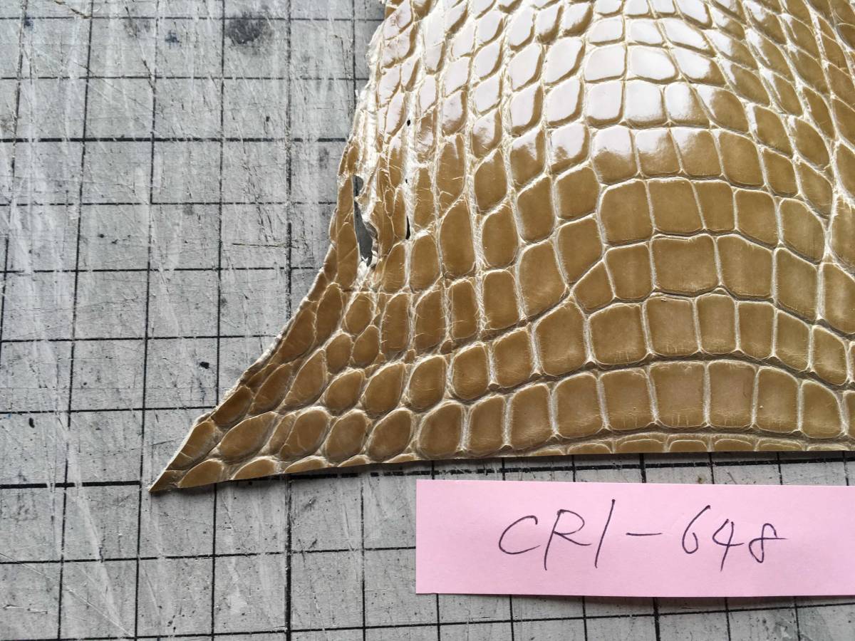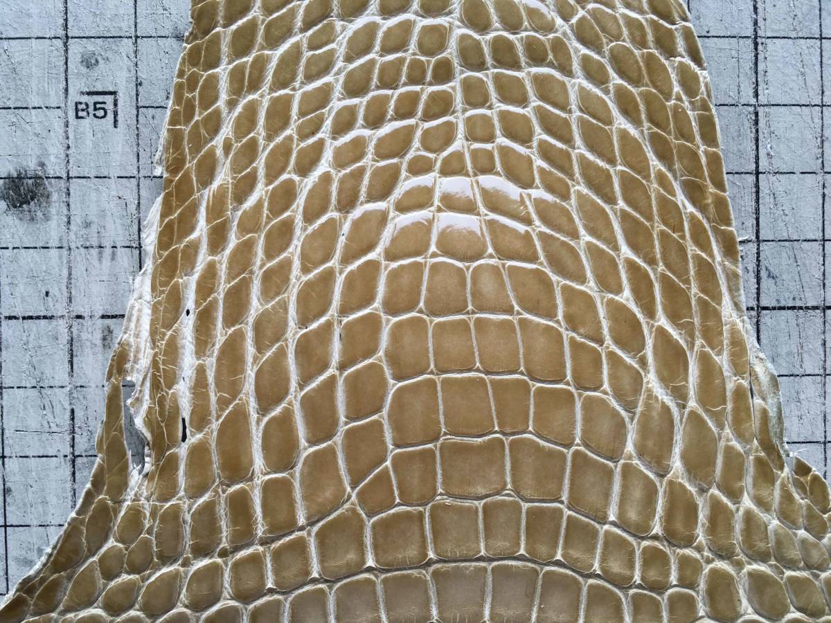 CR1-648★グレージングシャイニーベージュアメリカンアリゲーター レザークラフト クロコダイル はぎれ ハギレ 革小物 キーホルダー 財布