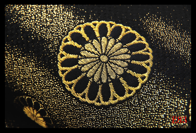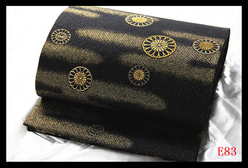 【E83】厳選西陣 手織 ヱ霞に菊文様黒地 全通高級正絹純金糸美術袋帯 新品同様 ◇検◇簪着物名古屋帯帯締め