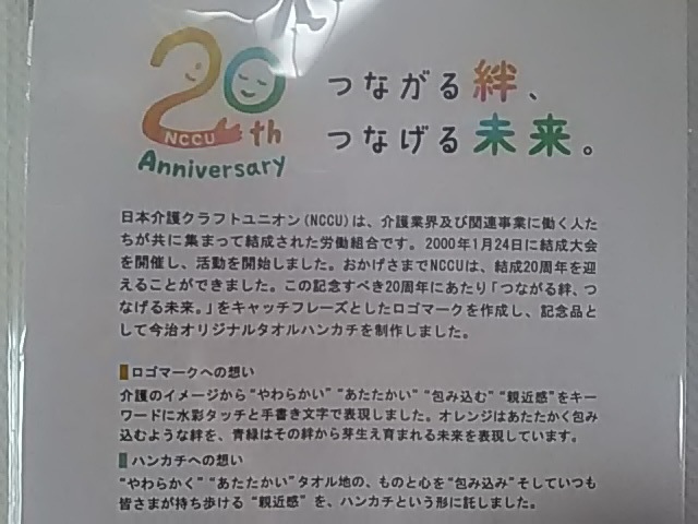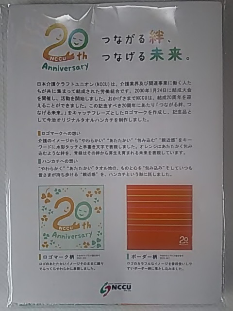 本品は、タオルハンカチ★今治タオル★藤高 FUJITAKA TOWEL★日本介護クラフトユニオン NCCU 結成20周年記念品★新品未開封品です。