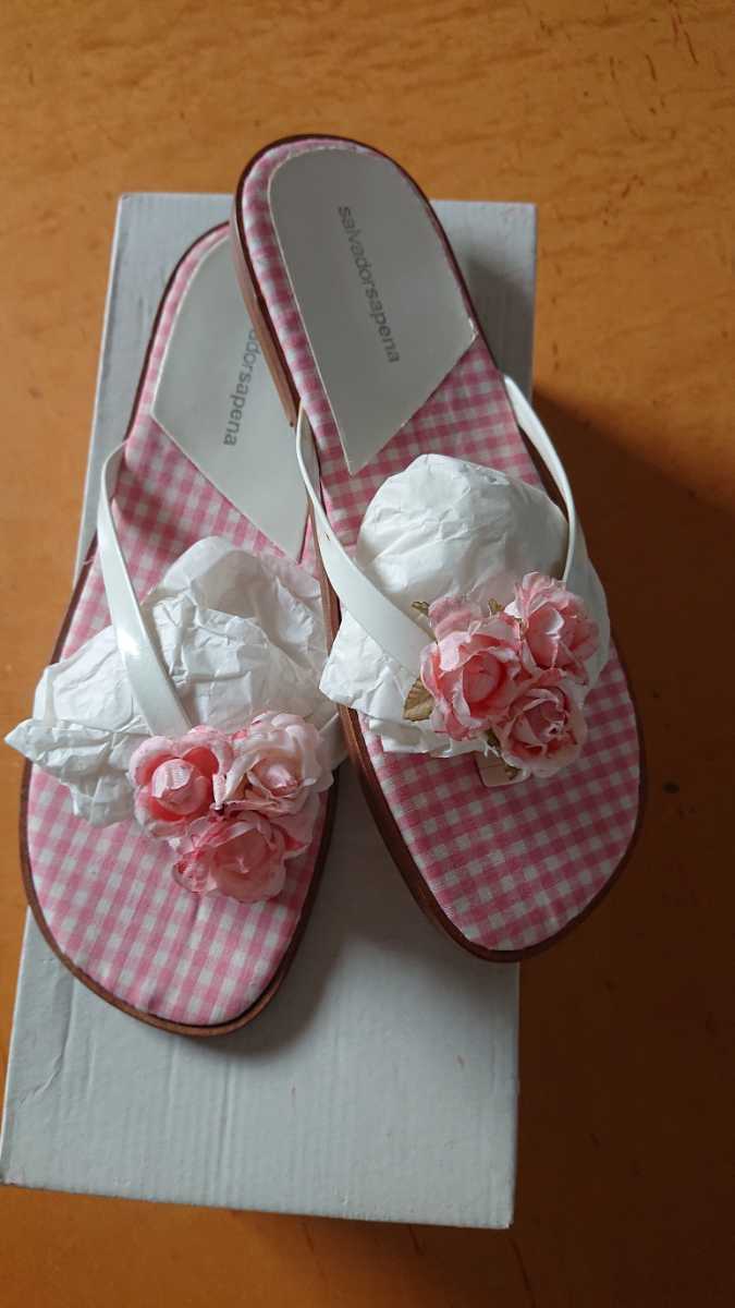 サルバドールサペナのサンダルです。ビームスで購入しましたが、結局着用せず保管していました。スペイン製でサイズは38表示。実際に測ったところ25.5cmです。