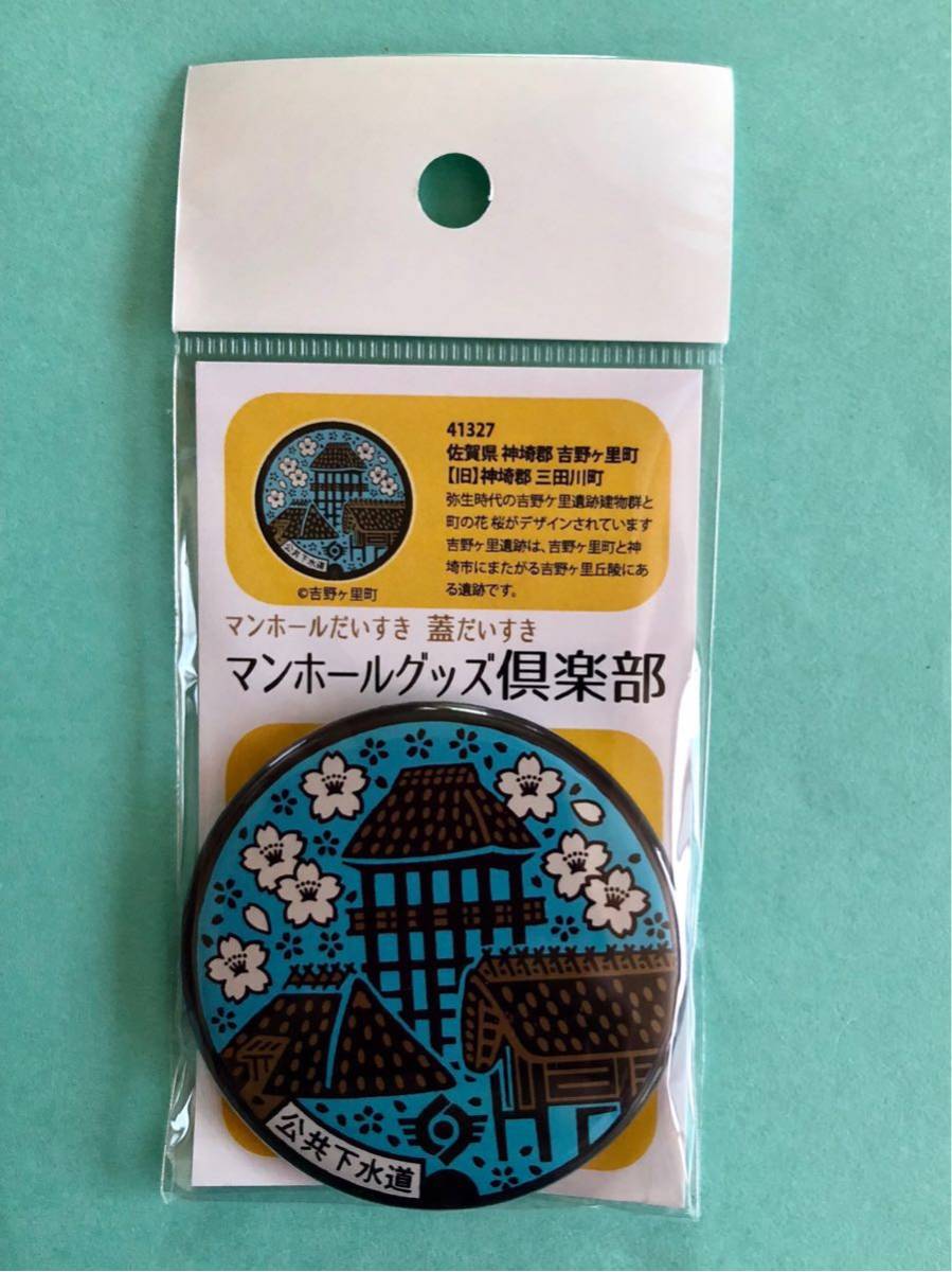 弥生時代の吉野ヶ里遺跡県建造群と町の花 桜がデザインされています。