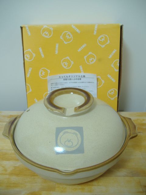 たっくん(TAKKUNN)の土鍋(土なべ)。直径18.5センチ程度。中央信託銀行で頂いたものです(非売品)。たっくんファンの方、いかがですか。未使用品ですが古いものです。火にかけられるかどうかわかりません。貫入があるかもしれません。あらかじめご了承の上、ノークレーム・ノーリターンでお願い致します。他にも同様のグッズを出品していますので、ぜひご覧下さい。