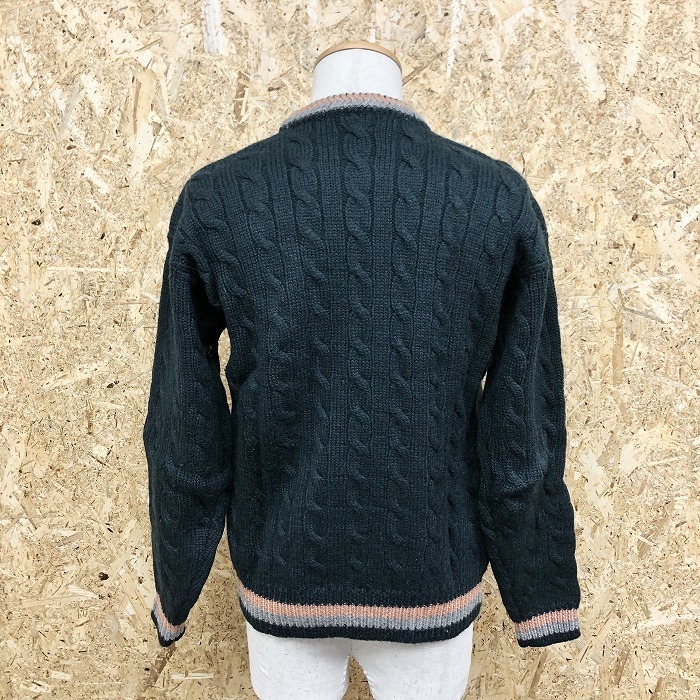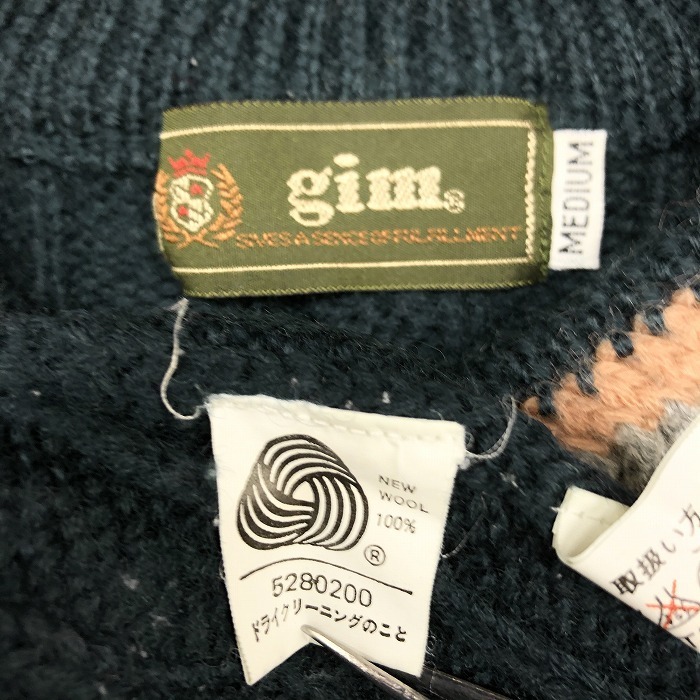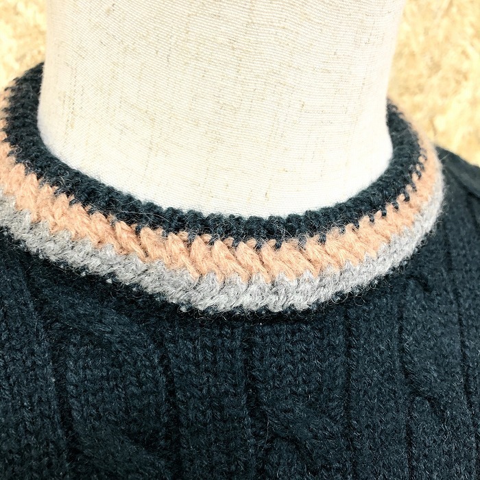 商品タイトル | gim ジム M メンズ ケーブルニット セーター 丸首 クル―ネック 長袖 ウール100% ダークグリーン×グレー×ペールオレンジ 濃緑 |