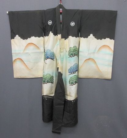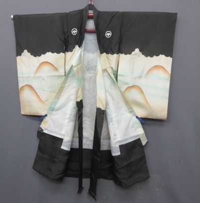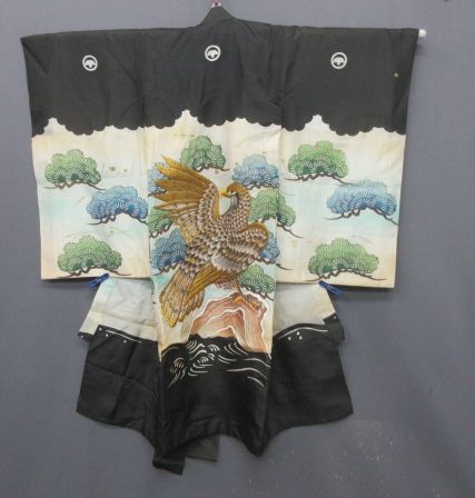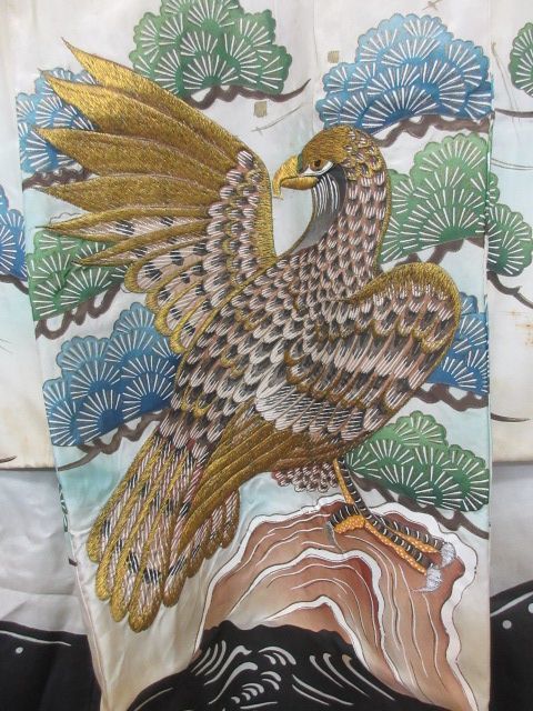 【政】29128 若松に刺繍鷹模様 子供 着物 宮参り シシュウ 和装小物 和服