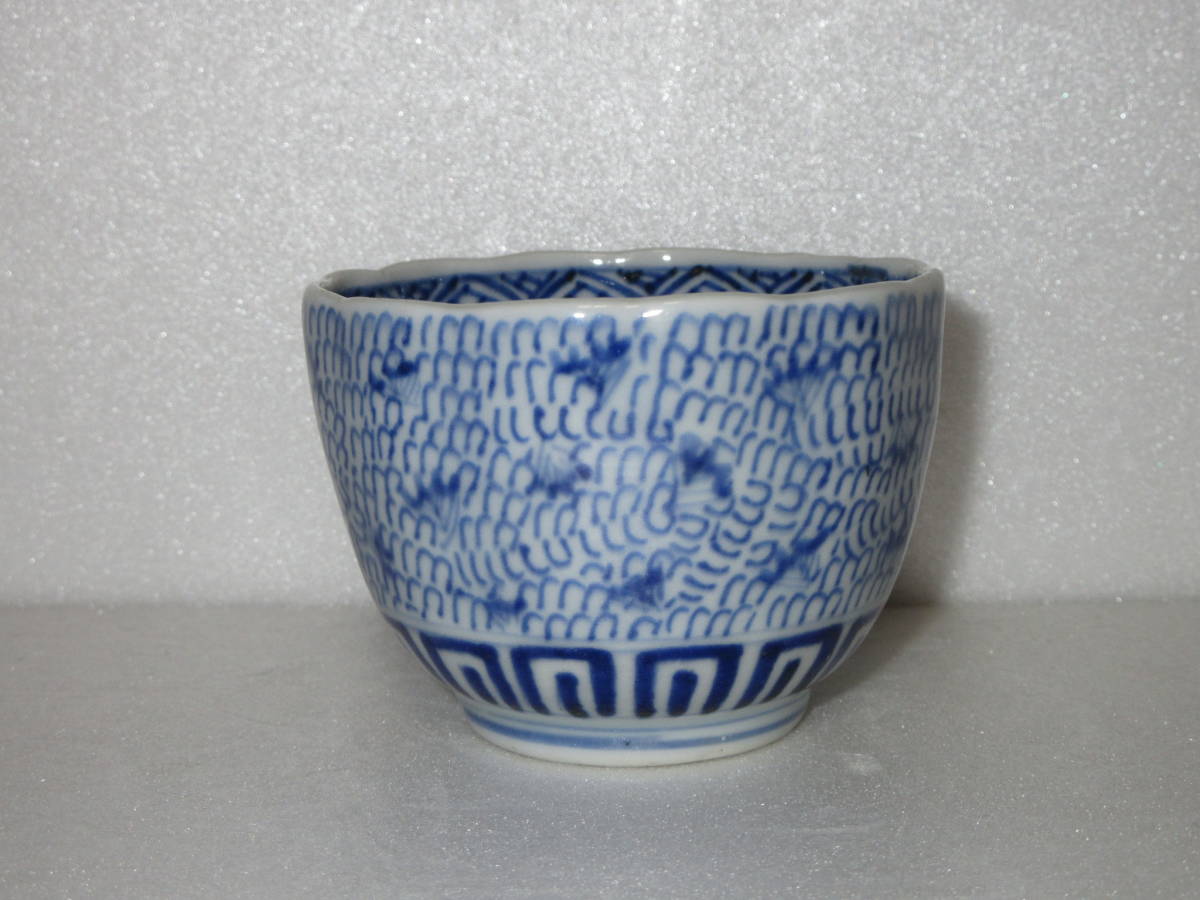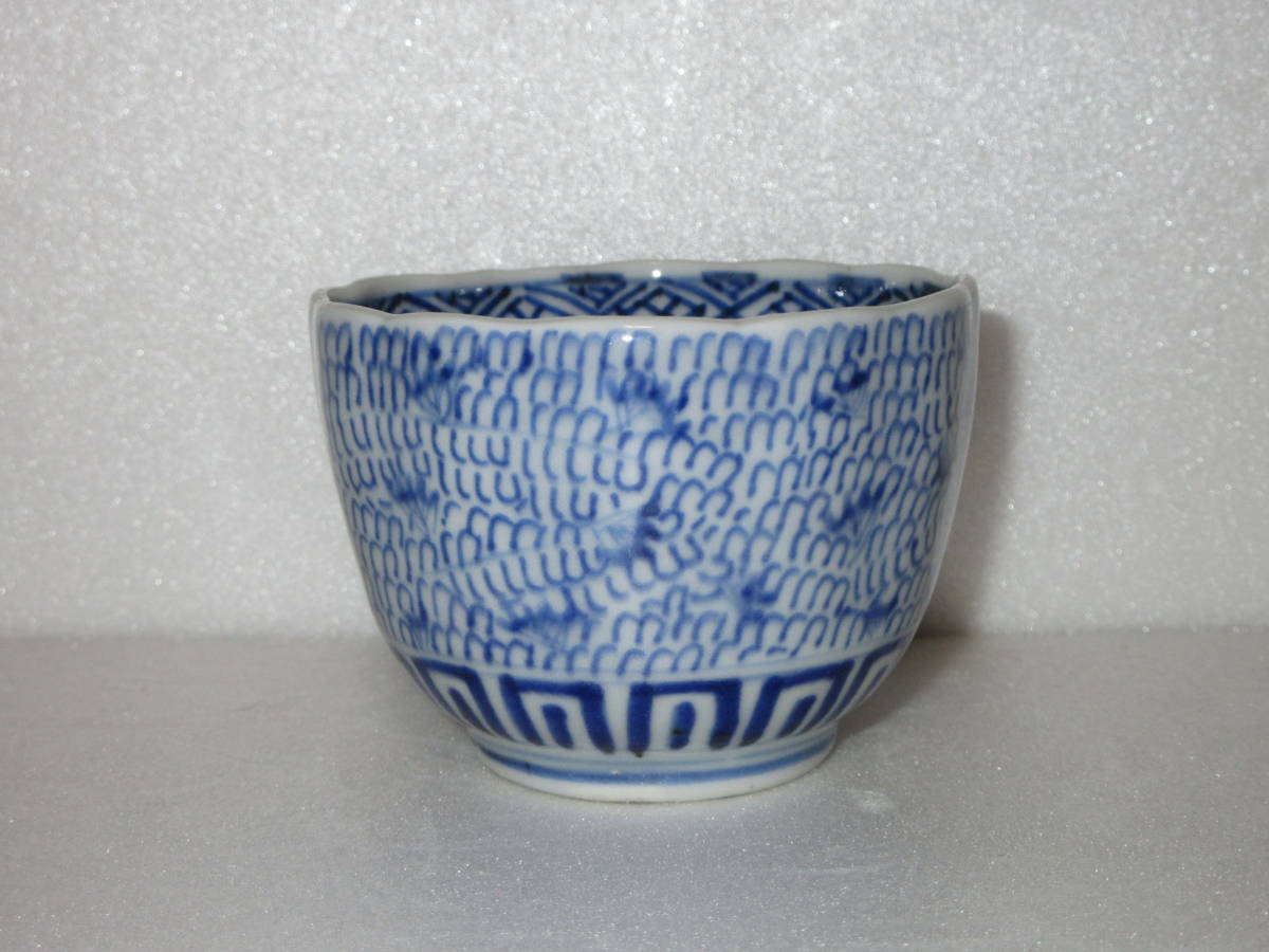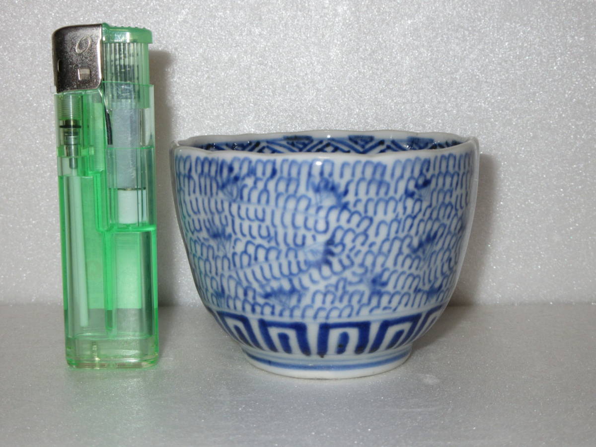 【江戸時代保証】 古伊万里 染付『みじん唐草』蕎麦猪口 猪口 1客 (高5.5㎝) 酒器にも     ●無傷●