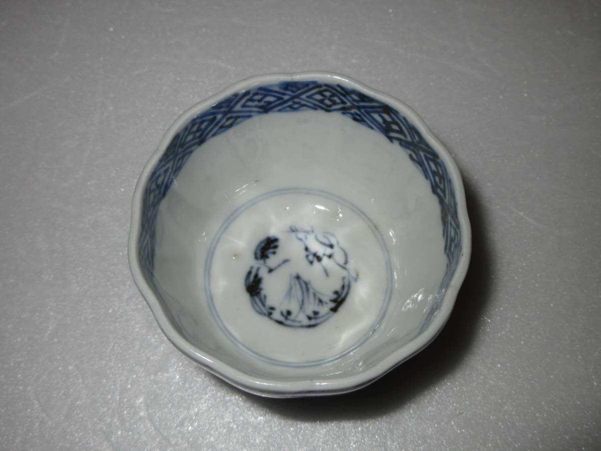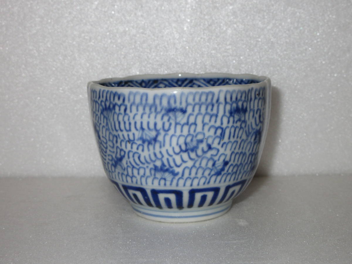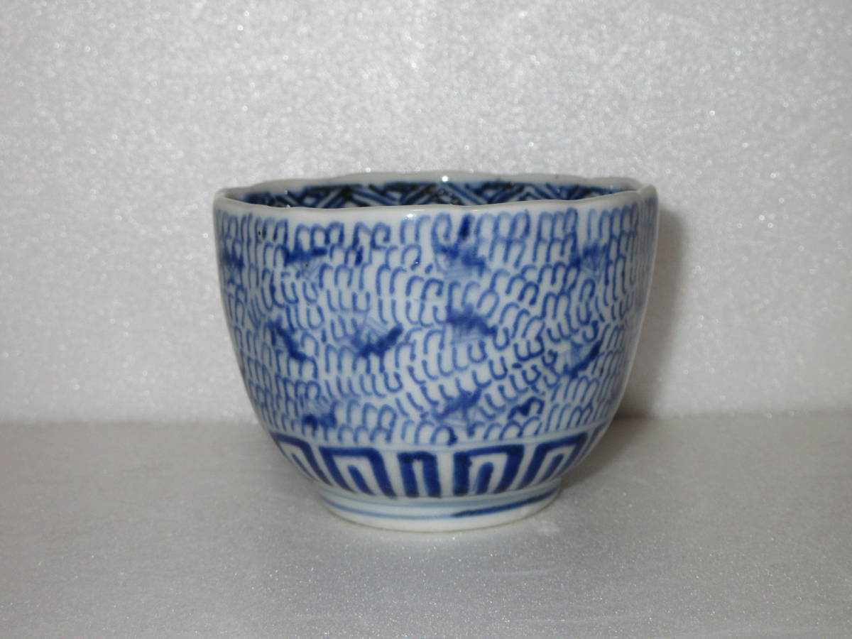 【江戸時代保証】 古伊万里 染付『みじん唐草』蕎麦猪口 猪口 1客 (高5.5㎝) 酒器にも     ●無傷●