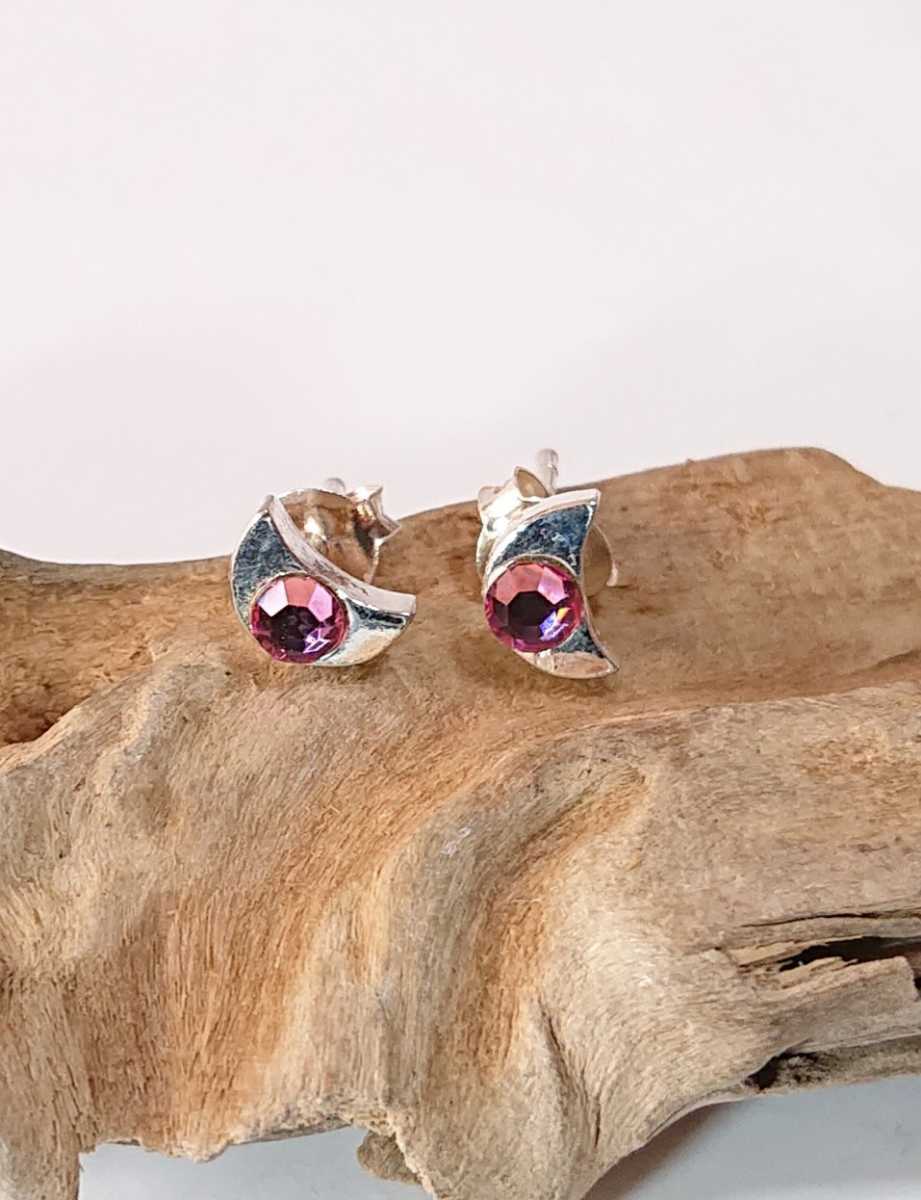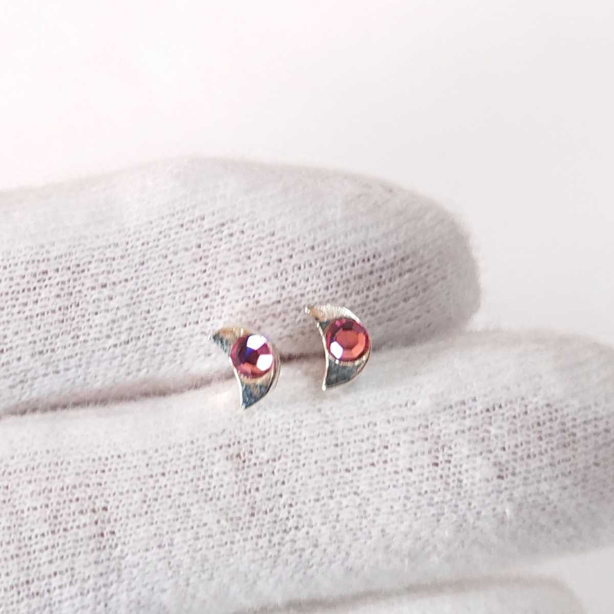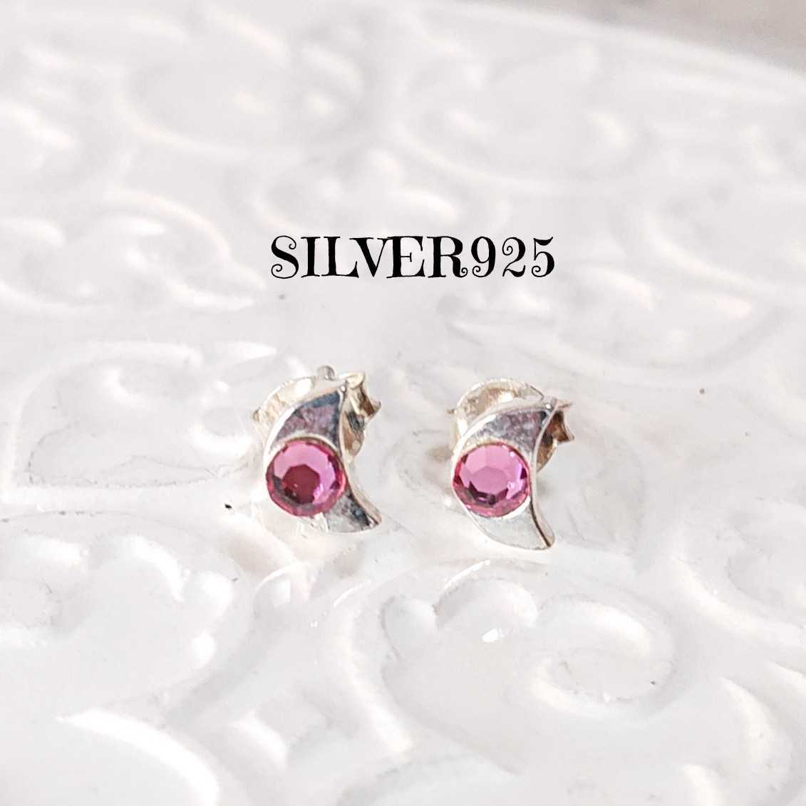 小さいお月様にピンク色のラインストーンがアクセントになった可愛らしいピアス☆