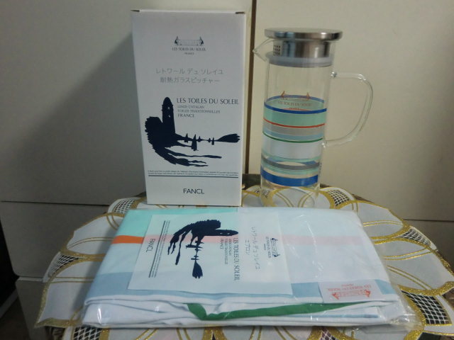 ★フランス発レ・トワール・デュ・ソレイユ エプロン&耐熱ガラスピッチャー700ml麦茶をそのまま冷蔵庫に限定非買品★切手★