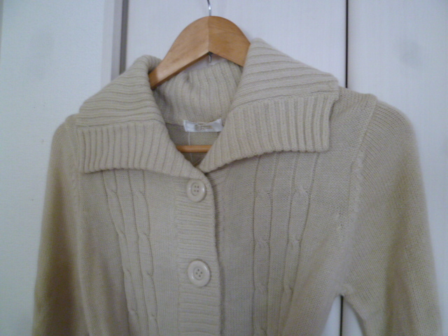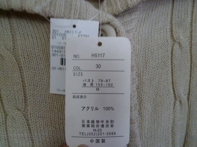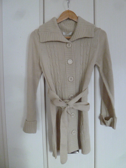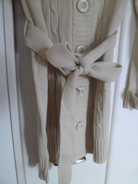 【新品】sharp shooter○ベージュケーブル編みロング丈ニットカーディガンジャケットロングカーディガンM○JK1027⑤