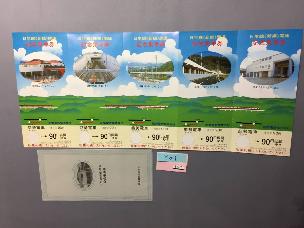 能勢電車 昭和53年12月12日 日生線(新線)開通記念乗車券 オリジナル記念乗車券5枚 【Y01-1787】