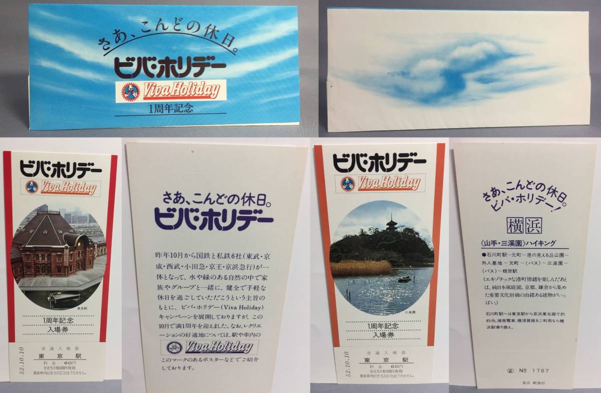国鉄・東京南鉄道管理局 昭和52年10月10日 ビバホリデー1周年記念(東京) 入場券5枚 【13-5363-2】