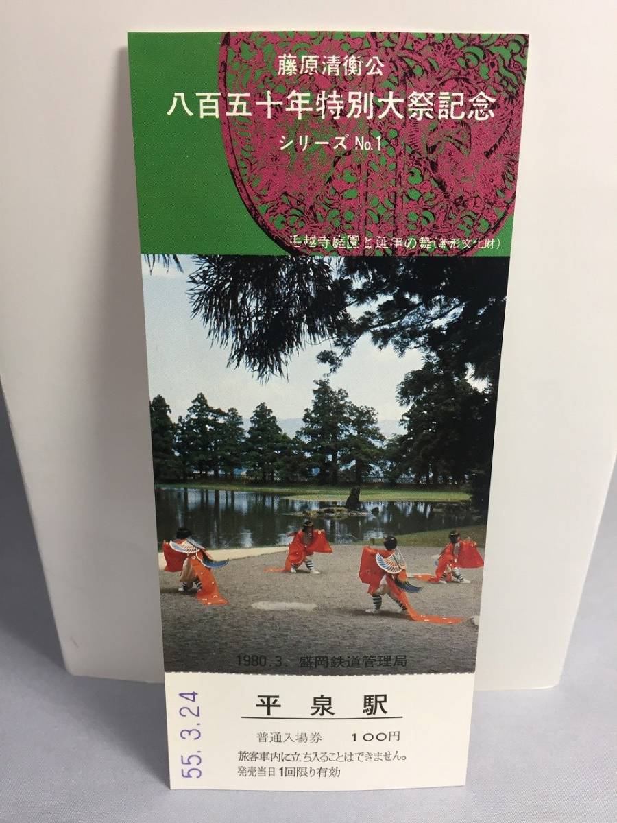 国鉄・盛岡鉄道管理局 昭和55年3月24日 藤原清衡公 八百五十年特別大祭記念入場券 シリーズ№1 3枚 【k17-045】