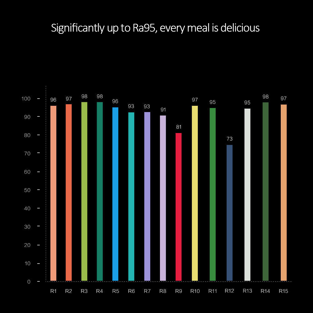 ●95Raは、低カラーレンダリングインデックスの視覚的影響を効果的に排除します。