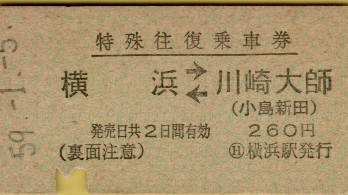 ◎ 京急 【 特殊往復乗車券 】 横浜 ←→ 川崎大師・(小島新田)
