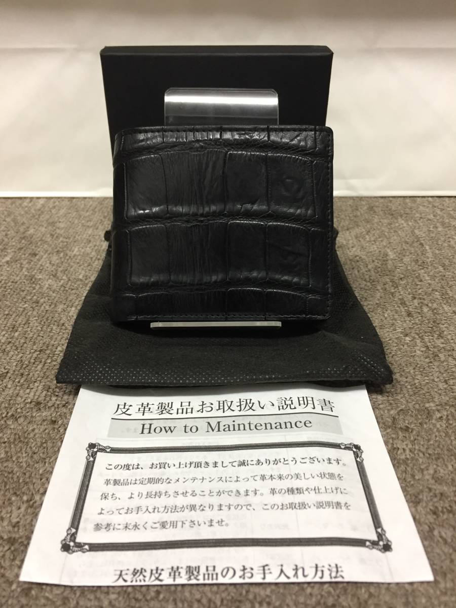 新品未使用!格安!マットクロコダイル 二つ折り財布 黒