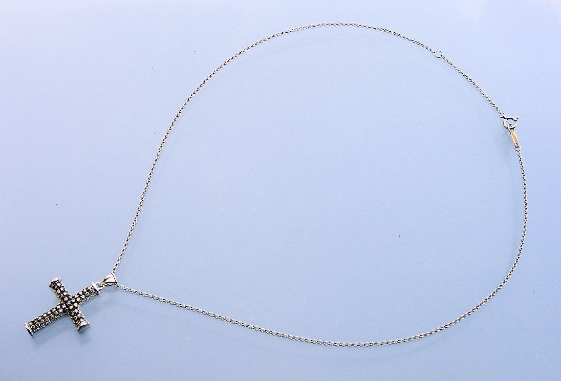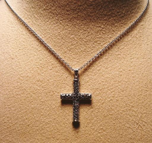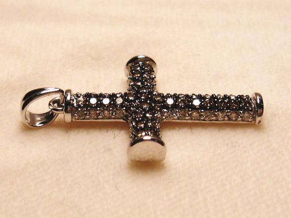 PE715:K18WG(一部黒メッキ) ダイヤ クロス ペンダント