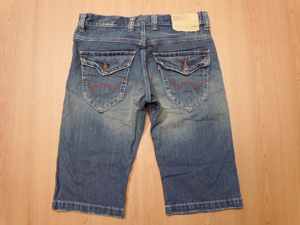 o648★エドウィン 4514 ハーフジーンズ★W32 ユーズド加工 デニムショーツ★即決★