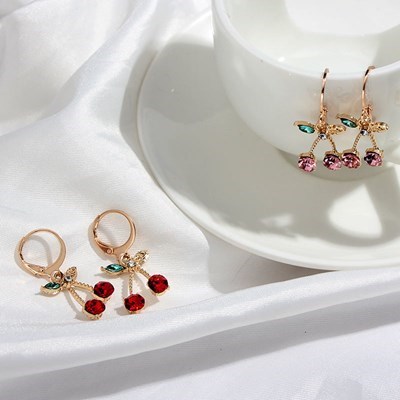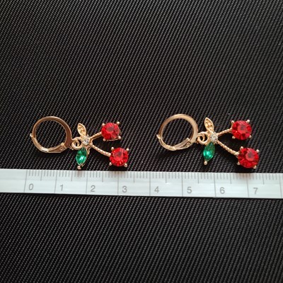ピアス チェリー さくらんぼ レッド 赤色 シンプル トレンディ 女性 かわいい 桜 クリスタル イヤリング 韓国 小さな 新鮮 #C457-15