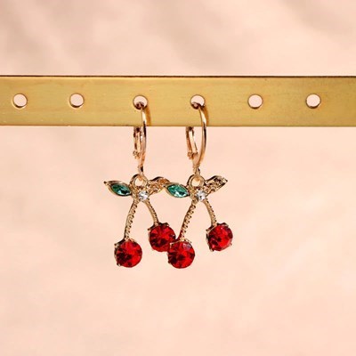 ピアス チェリー さくらんぼ レッド 赤色 シンプル トレンディ 女性 かわいい 桜 クリスタル イヤリング 韓国 小さな 新鮮 ジュエリー 139301RD