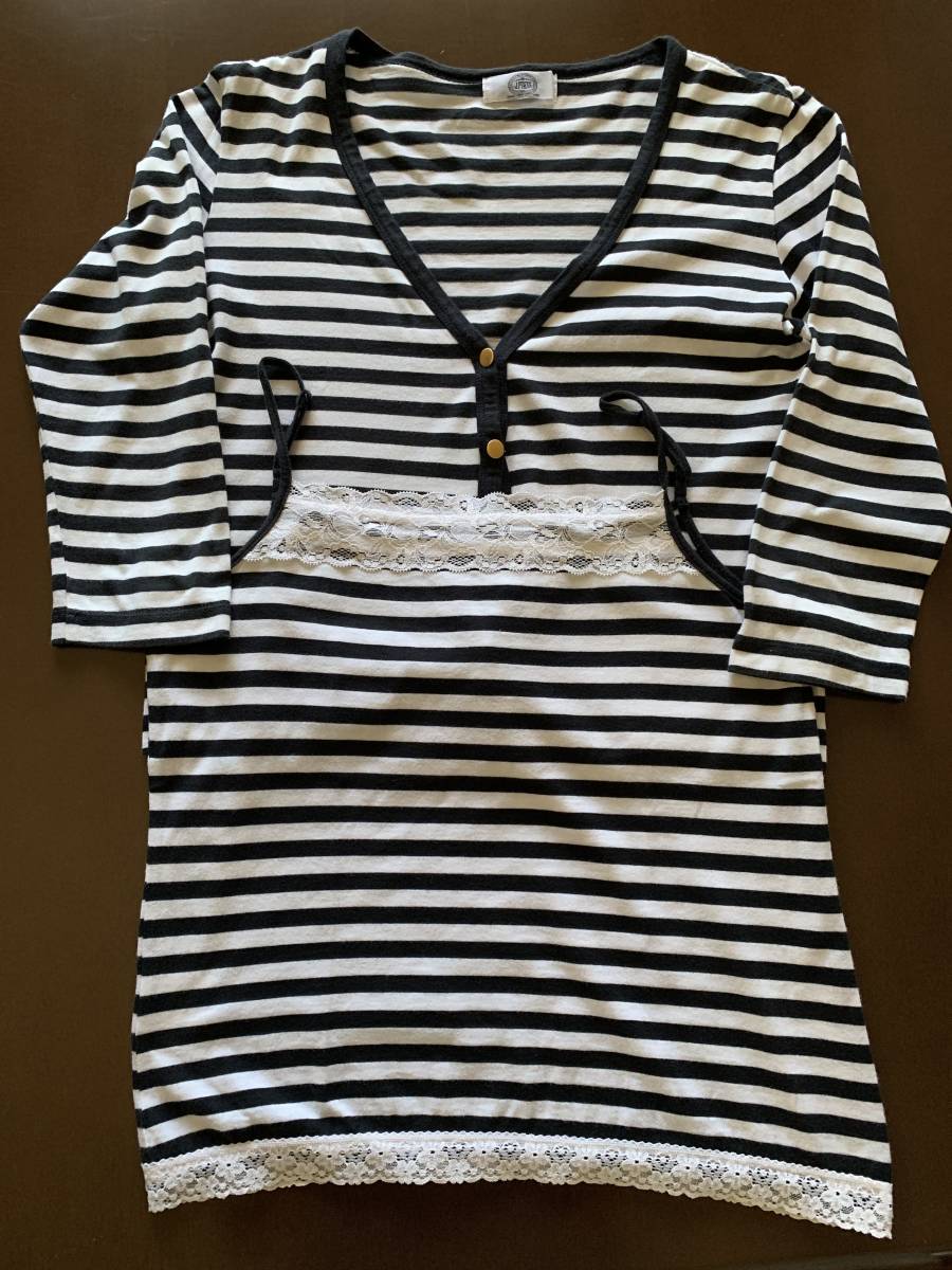 七分袖のカーディガンと重ねて着用すると裾のレースが見えるので、キチンとした印象になりますよ♪