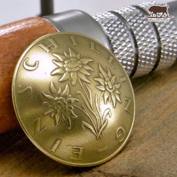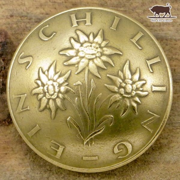 ▼コンチョ ネジ式 オーストリア 1シリング エーデルワイス 花 22mm 燻し無し ☆ ネジ ボタン コイン パーツ