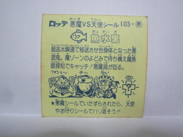 ビックリマンシールです。 魚水鬼(ぎょすいき)(悪魔)No.103 汚れあります。 |