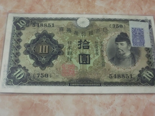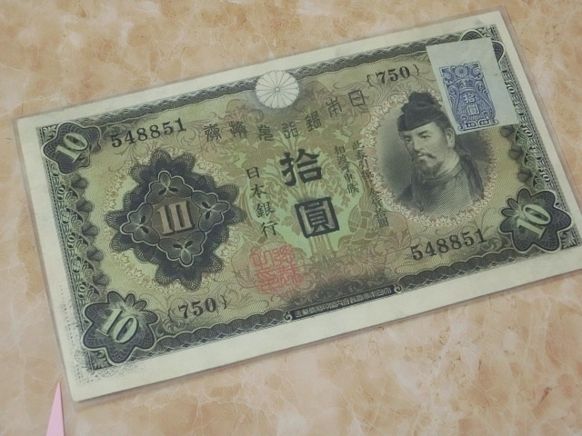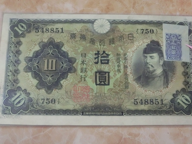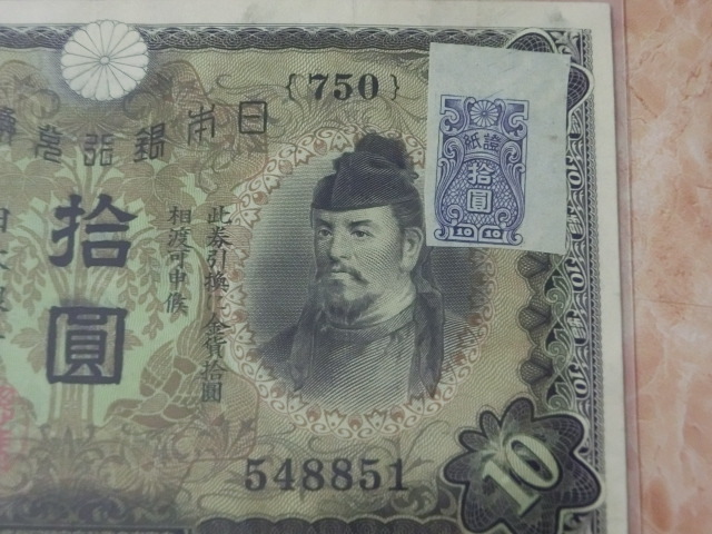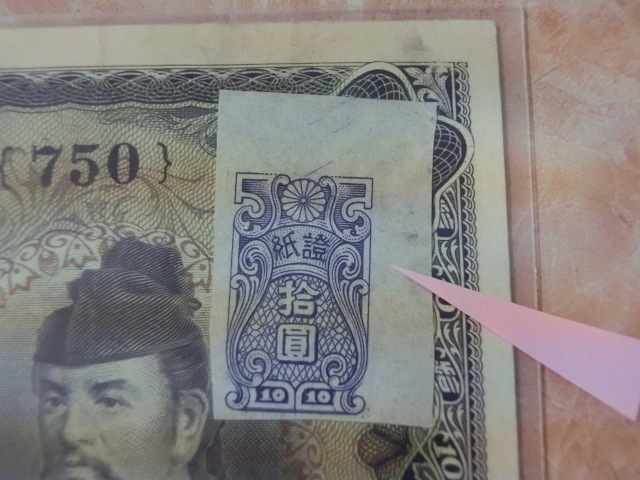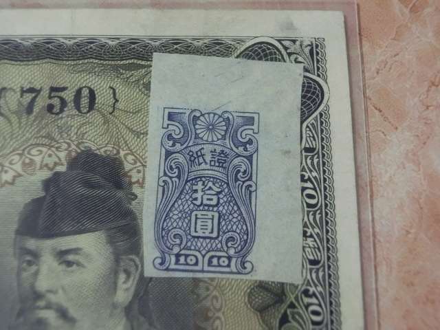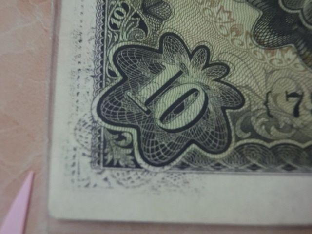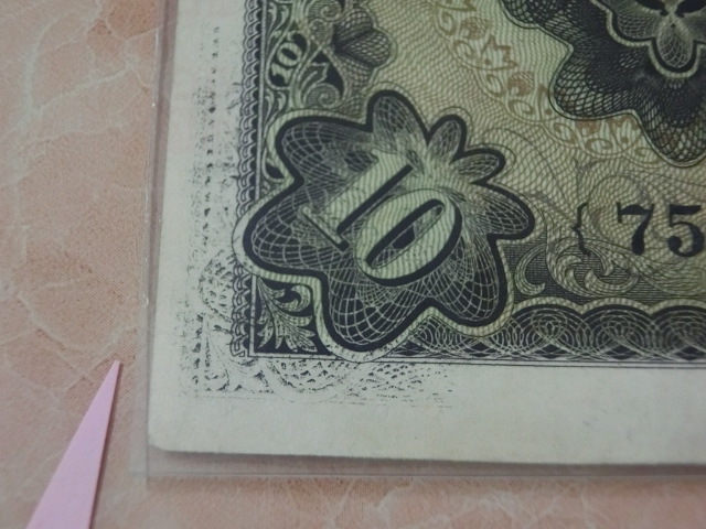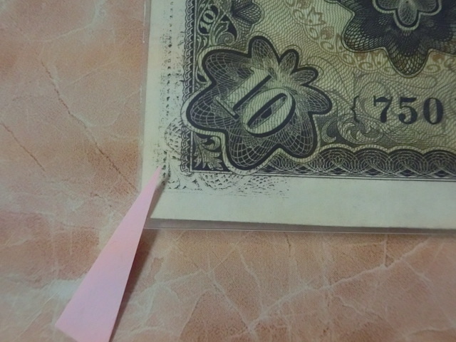 兌換券10円 1次10円で裁断のズレ有り・証紙に耳有り・左下に印刷のズレが有ります