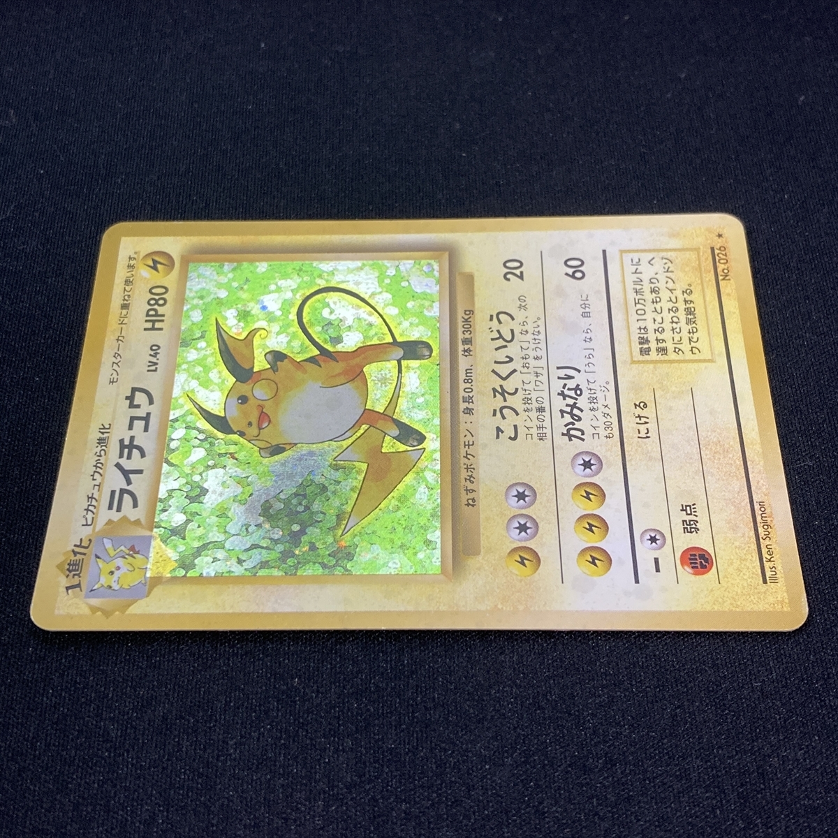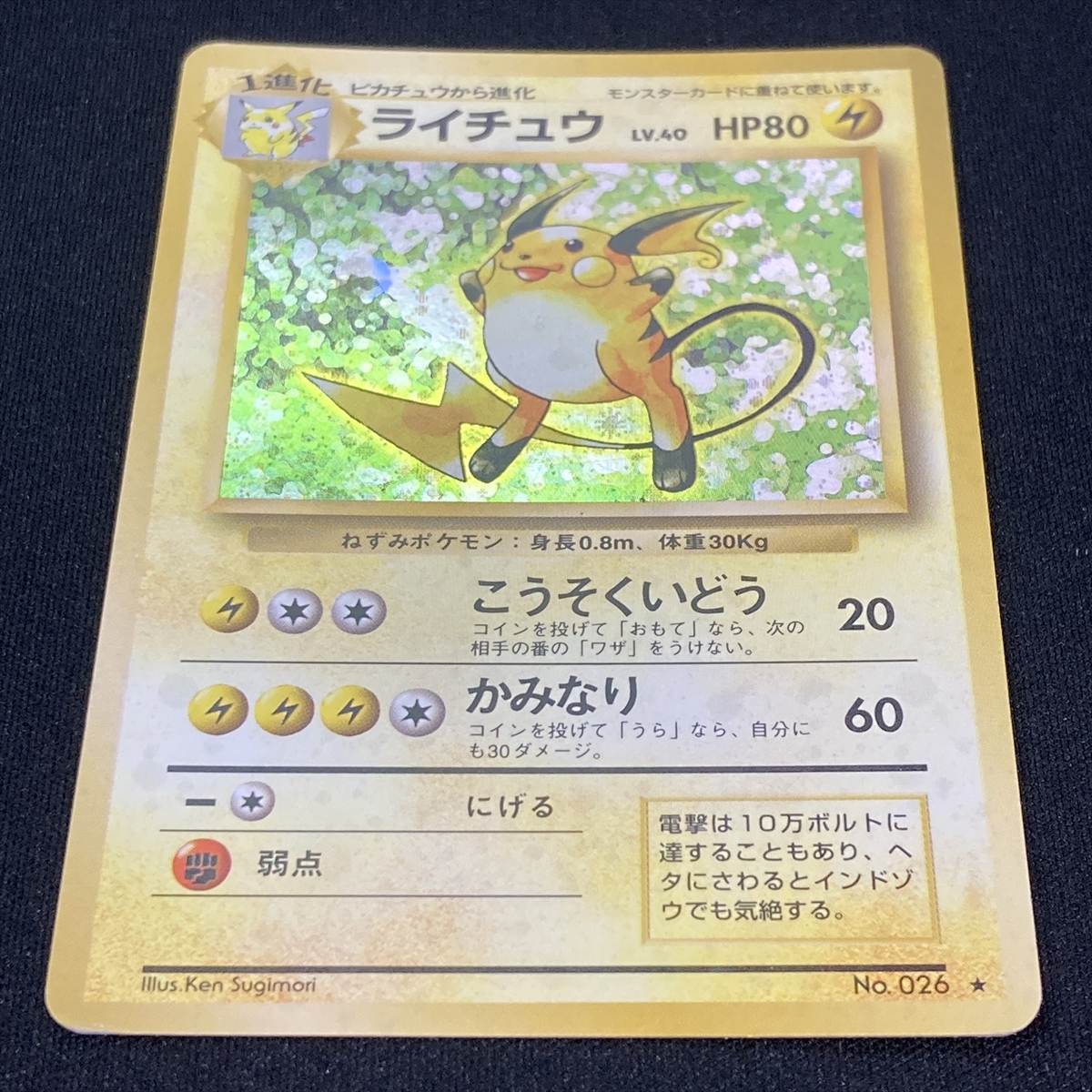Raichu No.026 Pokemon Card Base Set Holo Japanese ポケモン カード ライチュウ ポケカ ホロ 旧裏面 210727