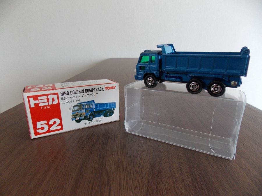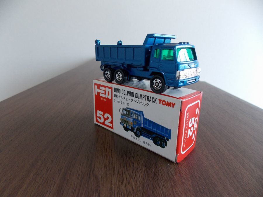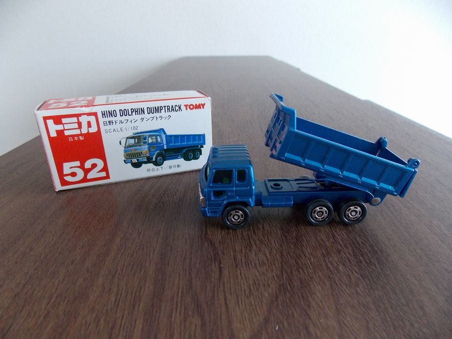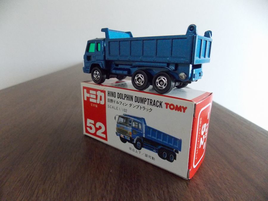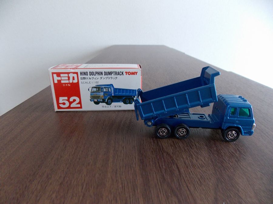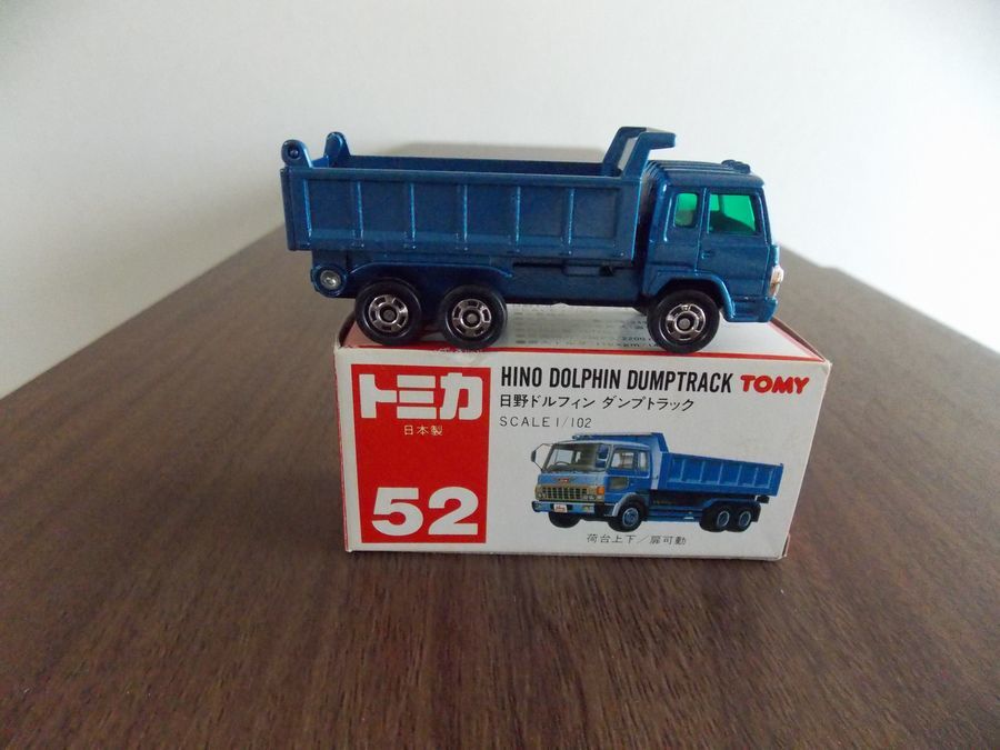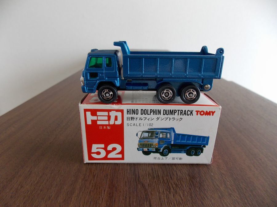 543  トミカ 赤箱ジャパン物 52 日本製  日野 ドルフィン ダンプトラック   未使用に近い!  ・荷台上下  ・扉可動  S=1/102