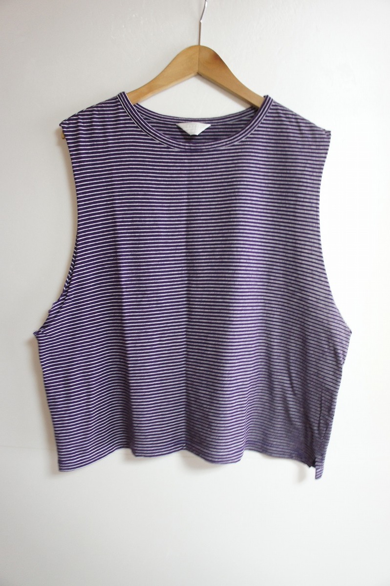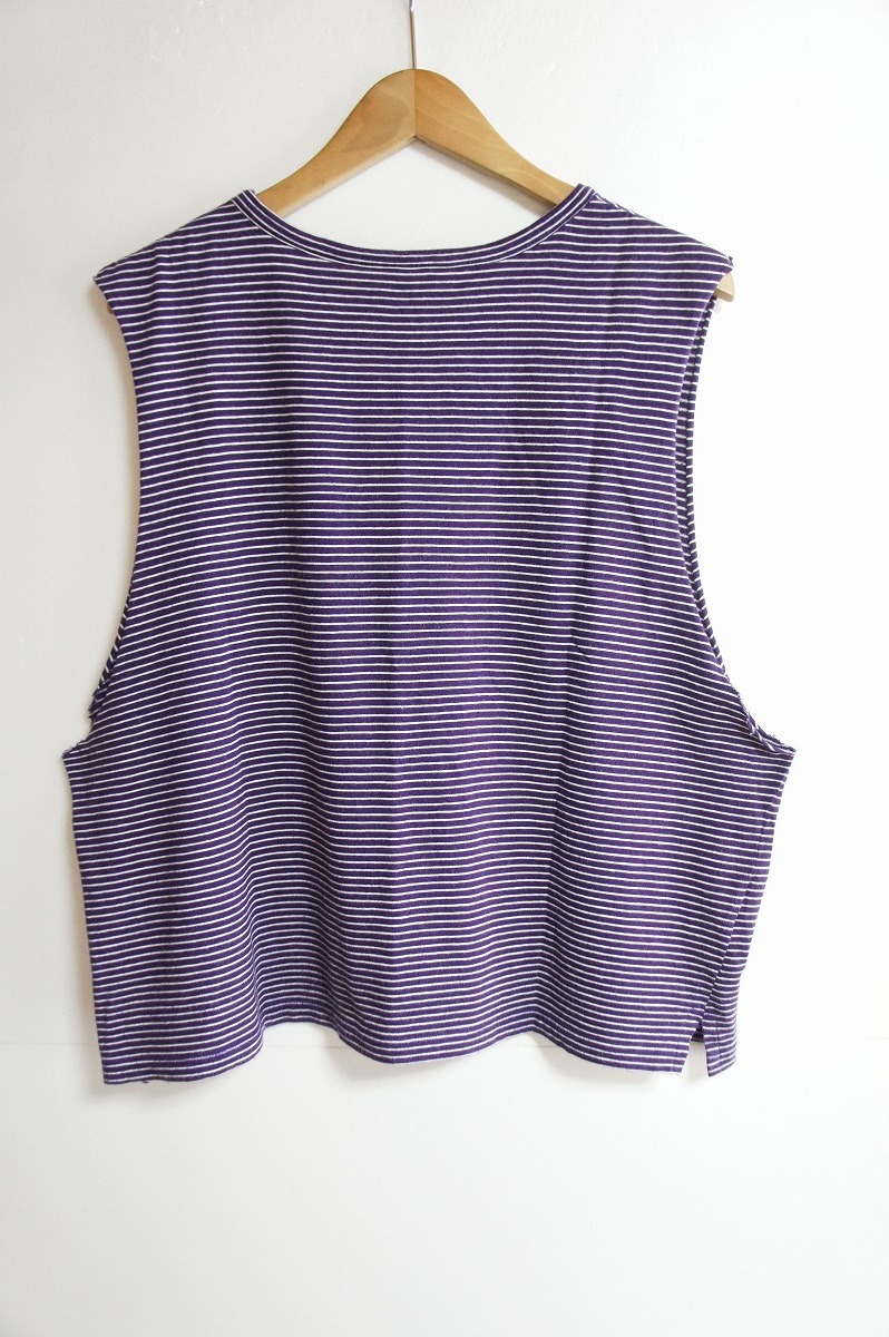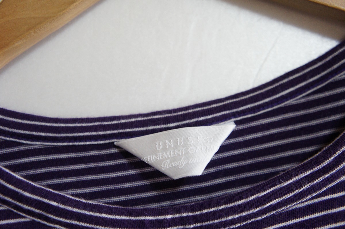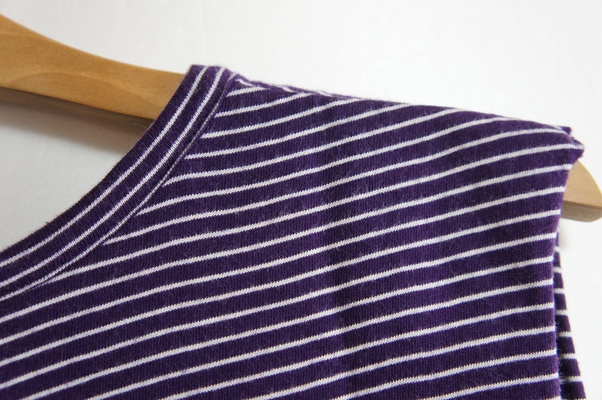 希少19SS UNUSEDアンユーズド US1568 BORDER N/S TEE ボーダーノースリーブ カットソー 紫211L★13
