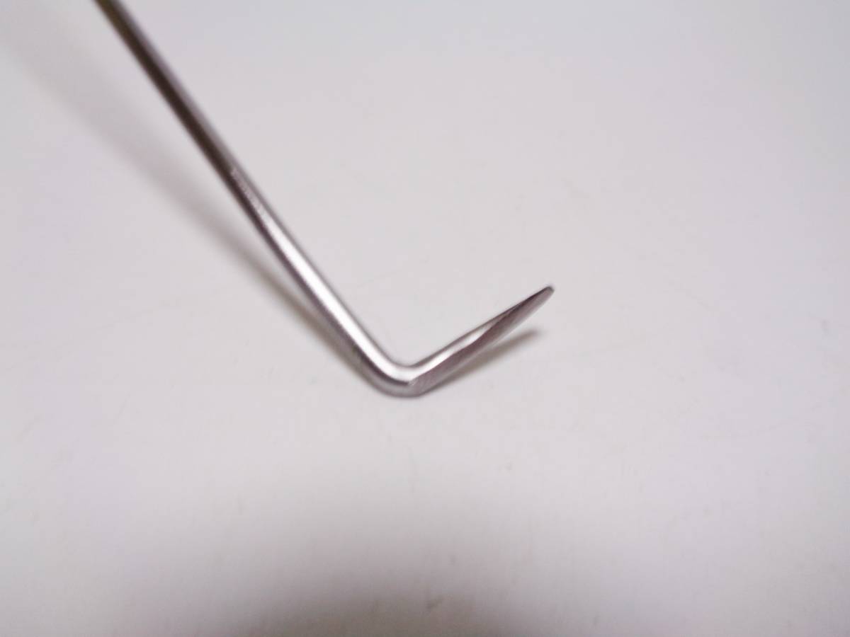 (コアを折り、コアガラをスピーディに引き出せる道具です又コアにかみ込んで残った鉄筋を取るのにも使用しています。グリップは手に沿って握りやすく、鉄芯も大変堅牢で曲りにも強い鋼材です。フエンス用の下向き削孔コアガラの取り出しも大変スピーディに行えます。)