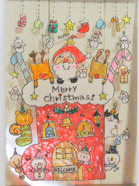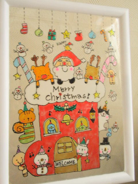 ★オーダー商品★ステンドグラス風★A4サイズ・サンタの家・クリスマス・プレゼント・インテリア・ハンドメイド・雑貨・絵