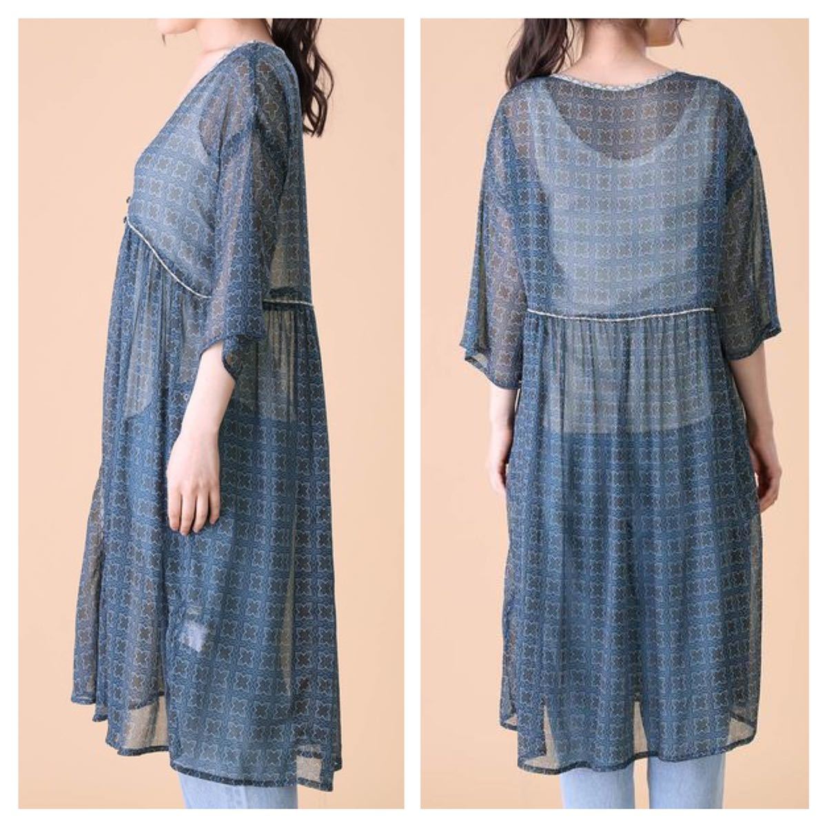 ●裏地がなく透けたシフォン素材は清涼感があり夏らしい雰囲気に●レイヤードを楽しめる素材感
