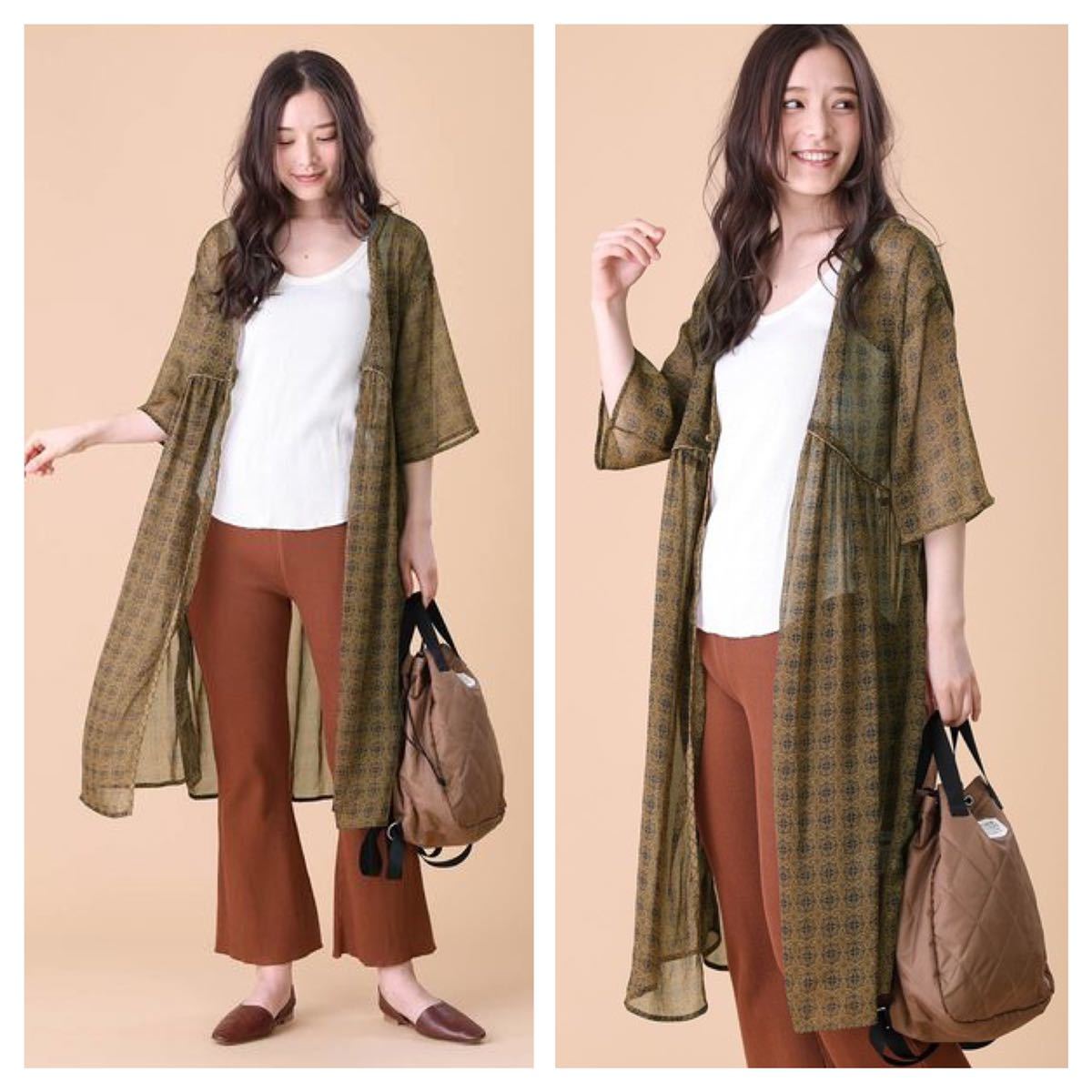 ●長めの袖丈で気になる腕周りもきれいにカバーしてくれるデザインコーディネートほどよい透け感が大人っぽく決まるガウン型ワンピース。