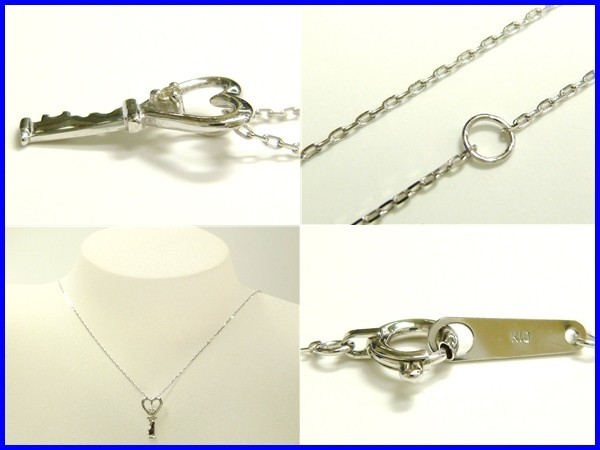 ペンダント本体は、3本の爪で1ピースダイヤモンドを留めた、オシャレな『鍵』モチーフ。