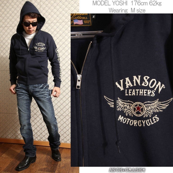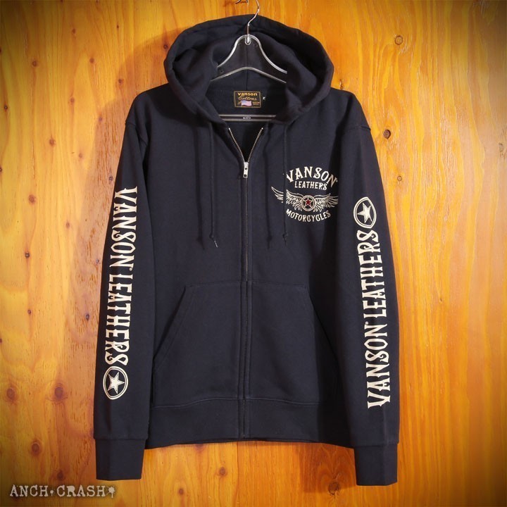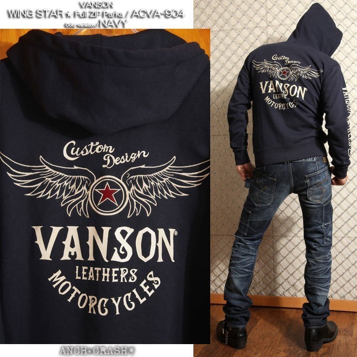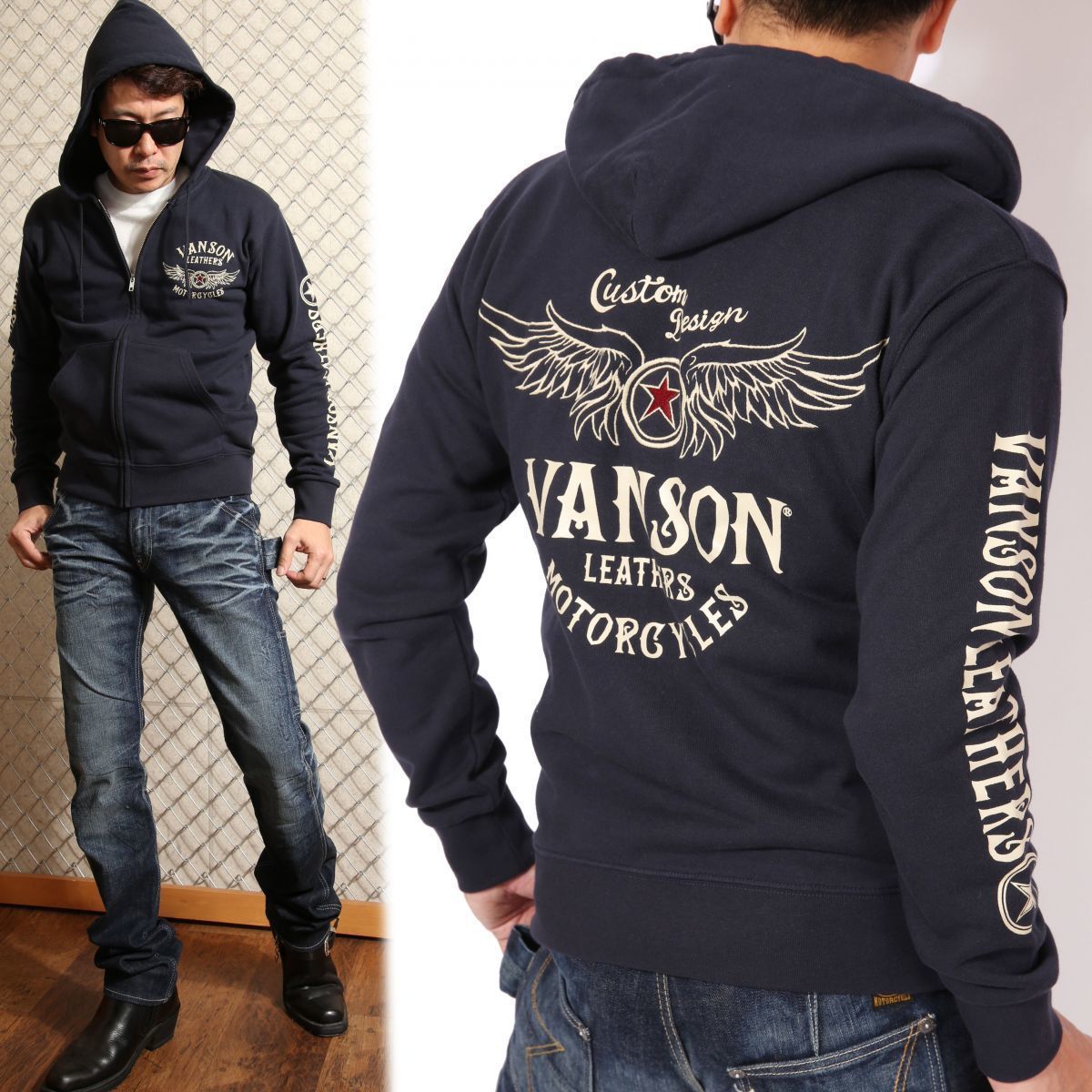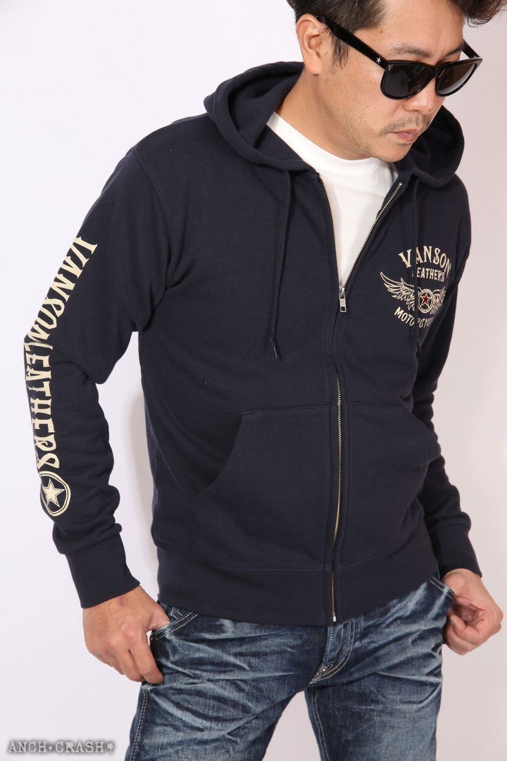 当店別注!VANSON バンソン 定番ウィング フルジップパーカー ACVA-904 ネイビー【Sサイズ】スタンダードサイズ バンソン バイカー