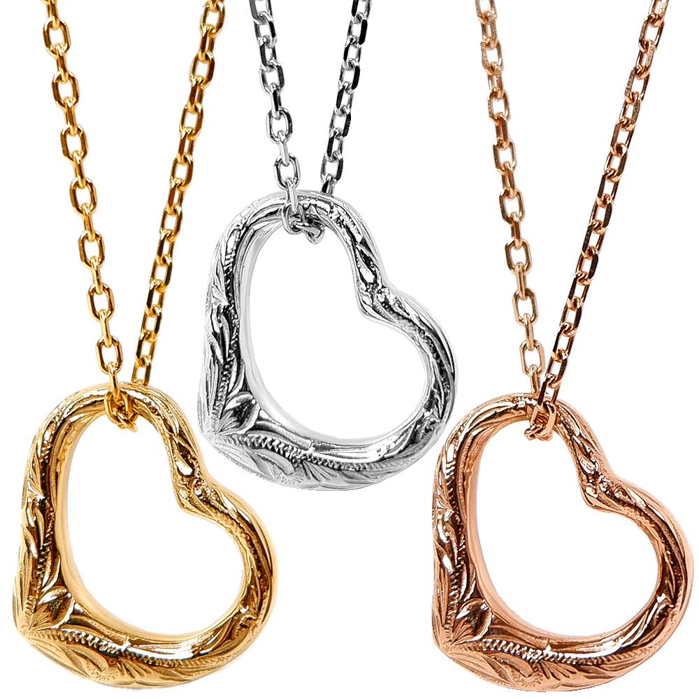 ★インスタ映え★ハワイアンジュエリー★アレルギー&海水浴&温泉OK★ステンレスネックレス★オープンハート&ピンクGD&ゴールド&シルバー&波