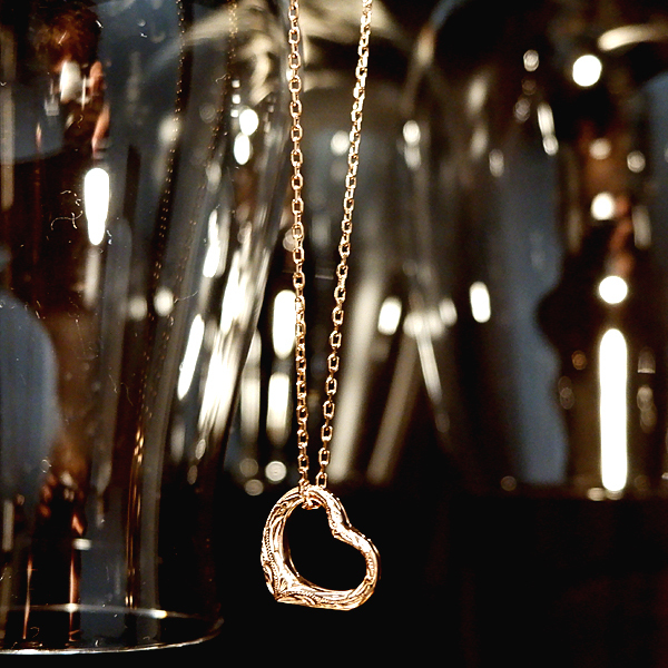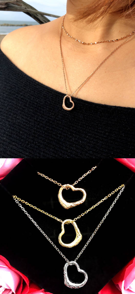 ステンレスネックレスオープンハート&ピンクGD&ゴールド&シルバー&波スクロール