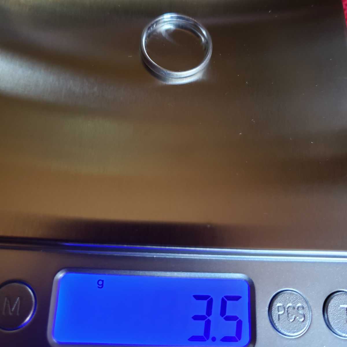 およそ3.5g(家庭用の秤を使用しているため、誤差ご容赦ください)のPt950、スタージュエリー8号ほどのリングです。