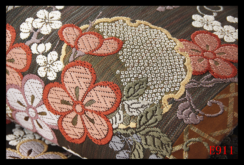 綾織地の上に、さらに多彩な色糸を使い、柄を刺繍のように立体的縫い取りで織り出す技法でした豪華絢爛な織物のことで。錦地の中で最も高級とされる織物です