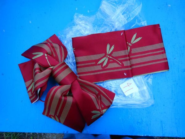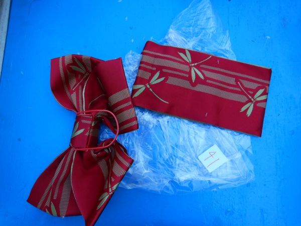 浴衣41 35x22cm トンボ赤 結び帯 おび ゆかた 祭り 着物 和風 夏