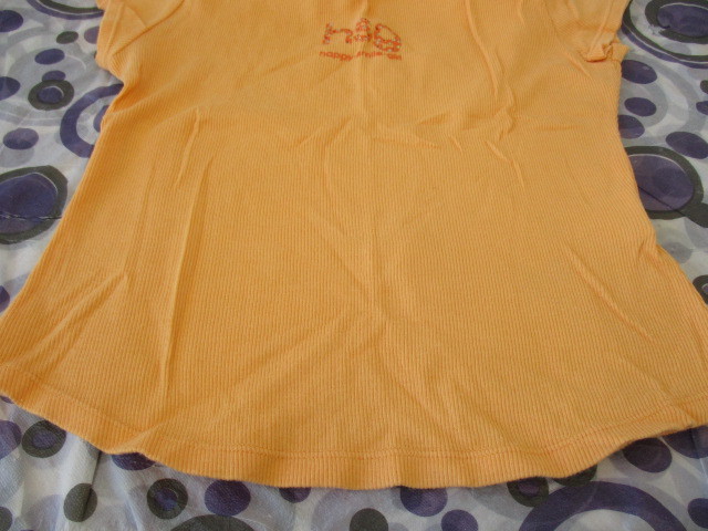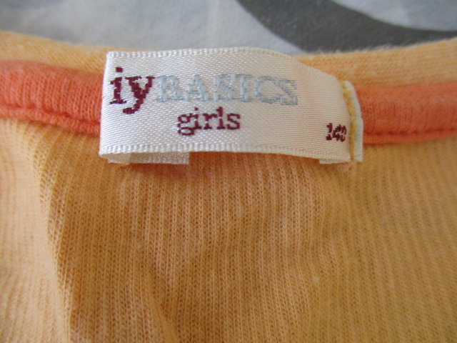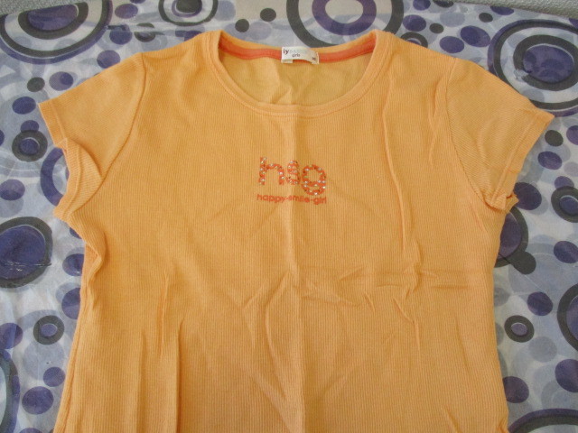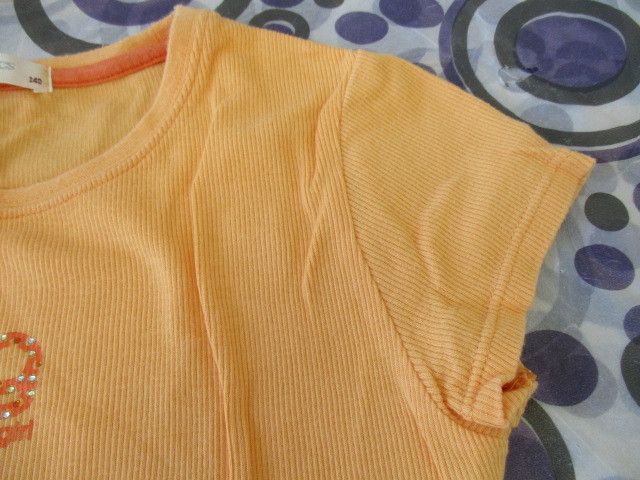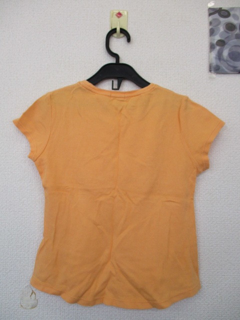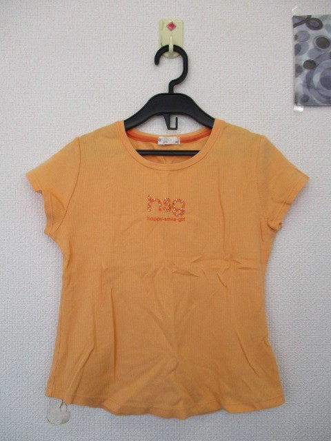 ★iy BASICS 女の子 リブTシャツ フレンチスリーブ ロゴ ワンポイント オレンジ系 (140)