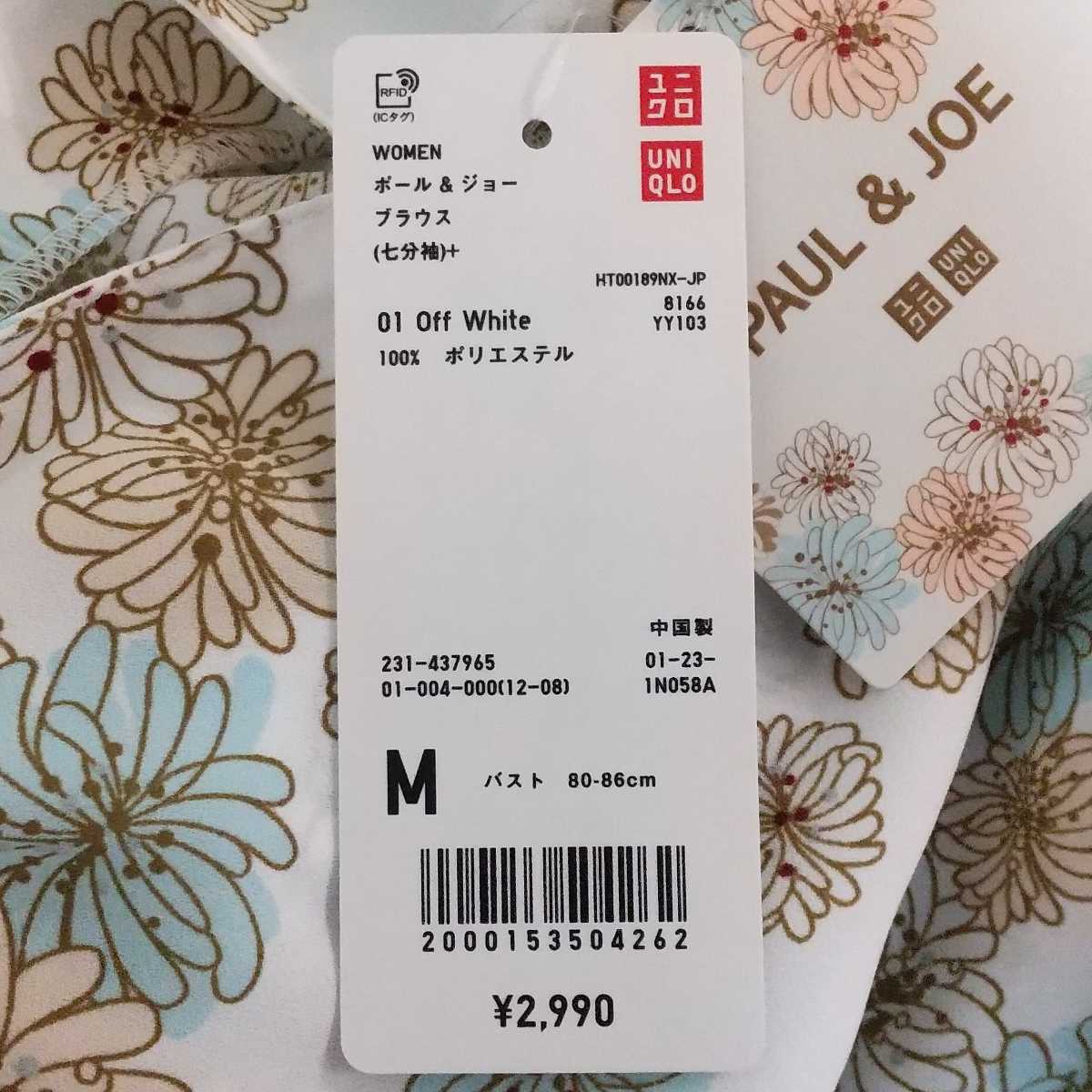 【UNIQLO / ユニクロ】M ブラウス(七分丈)オフホワイト PAUL&JOE ポール&ジョー 匿名配送