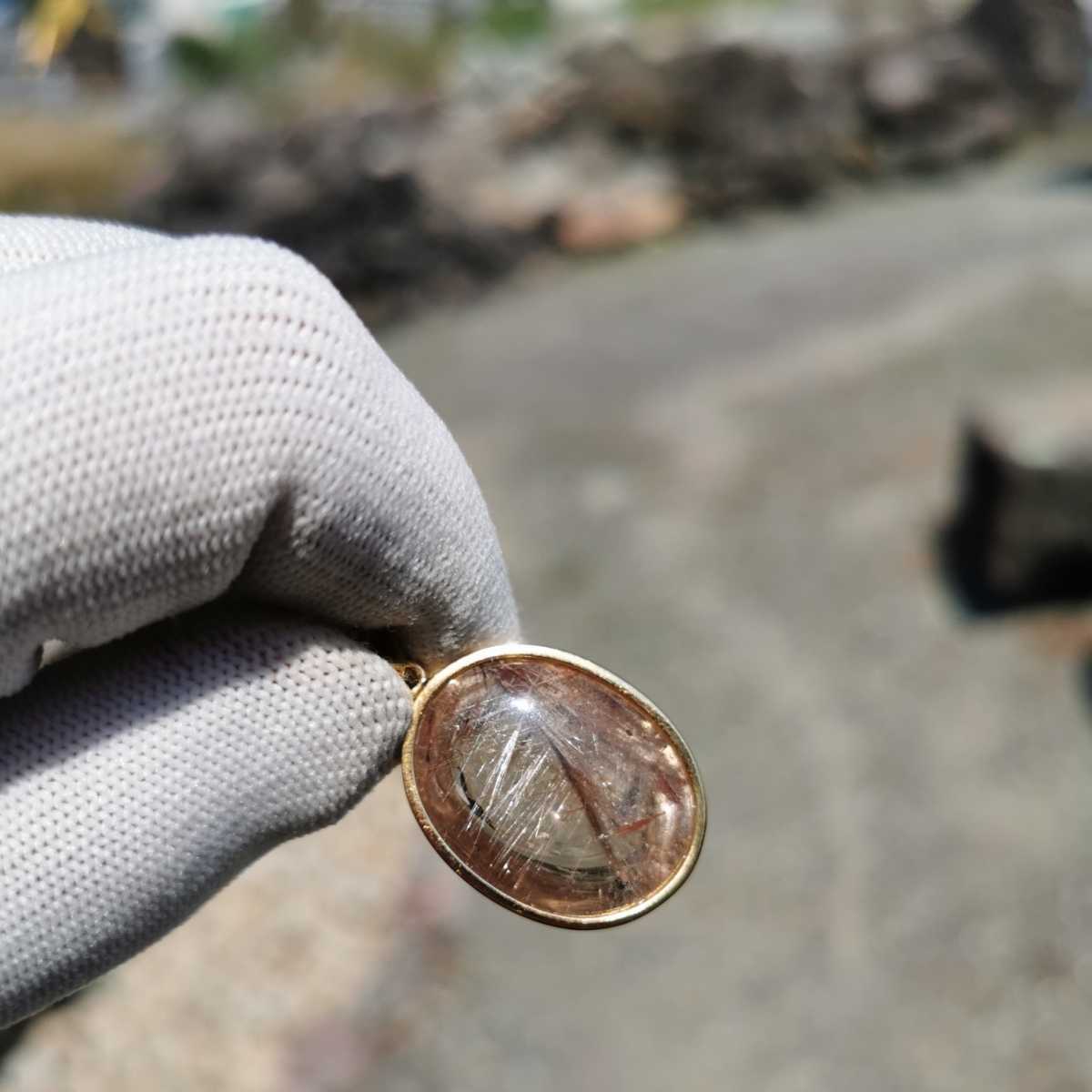 重さ10.9グラム!長さ3.6センチ横2.1センチ厚み1.3センチ!石枠は925の18KGPです!チェーン2ミリぐらいまで通ります!透明度あって綺麗に針入っていて素晴らしいです!送料無料宜しくお願いします!