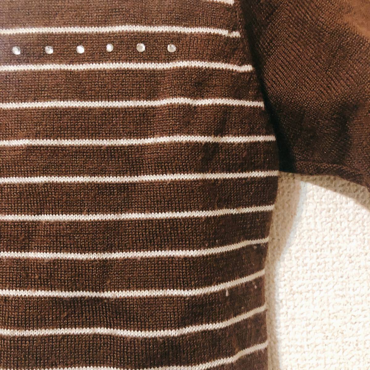 送料無料 AP 半袖 ニット アイボリー ブラウン ストライプ Mサイズ |