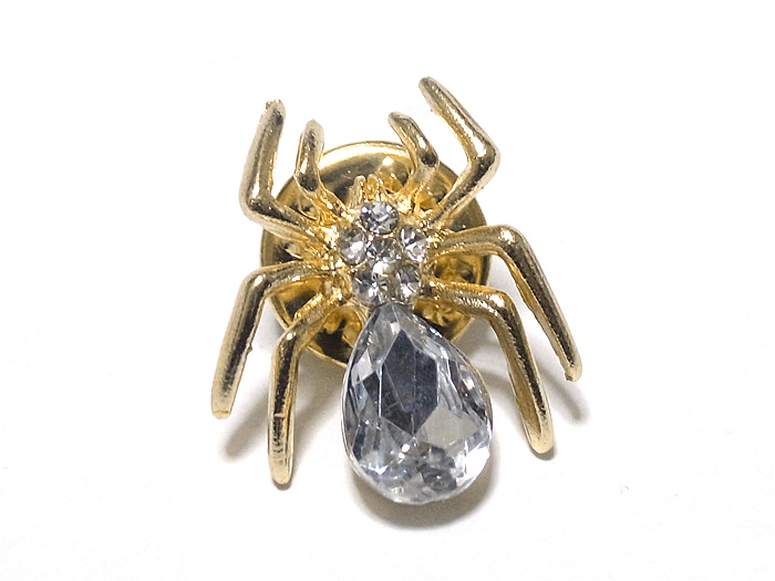 【ラペルピン★ピンズ】蜘蛛 クモ スパイダー ゴールド クリア pin-0135