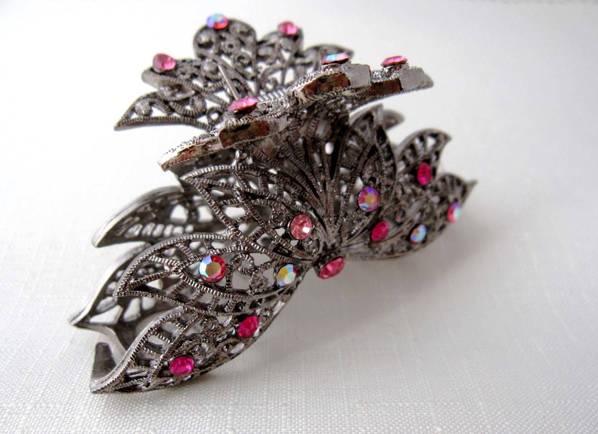 未使用 バンスクリップ ピンク系 ヘアアクセサリー*髪飾り*和装*女子会*スワロ*夜会巻*リトルムーン<21040812>