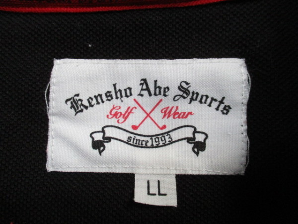 KENSHO ABE SPORTS ゴルフウエア 半袖ポロシャツです。サイズはLLです。カラーは黒×白です。サイズやデザインなど画像でご確認お願い致します。