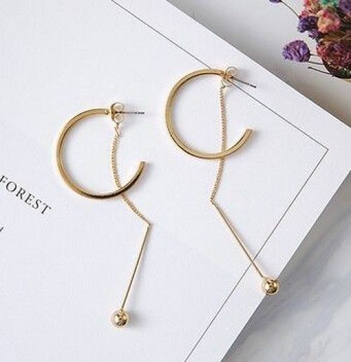 ≫送料無料*新品*ロングチェーンCピアス*スタッドキャッチ*ゴールドカラー*両耳レディース婦人アクセサリー*おしゃれかわいい