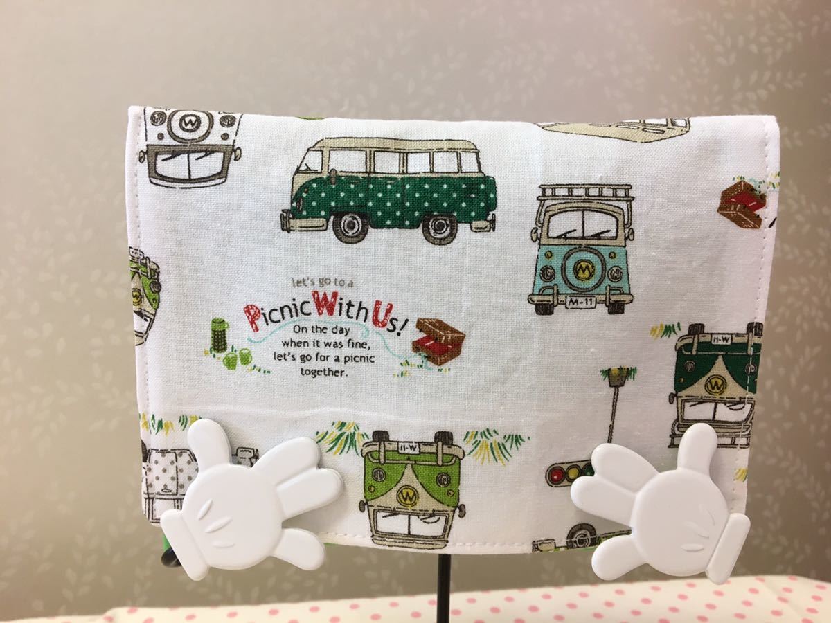 白地に車柄の綿生地で移動ポケットを作りました。